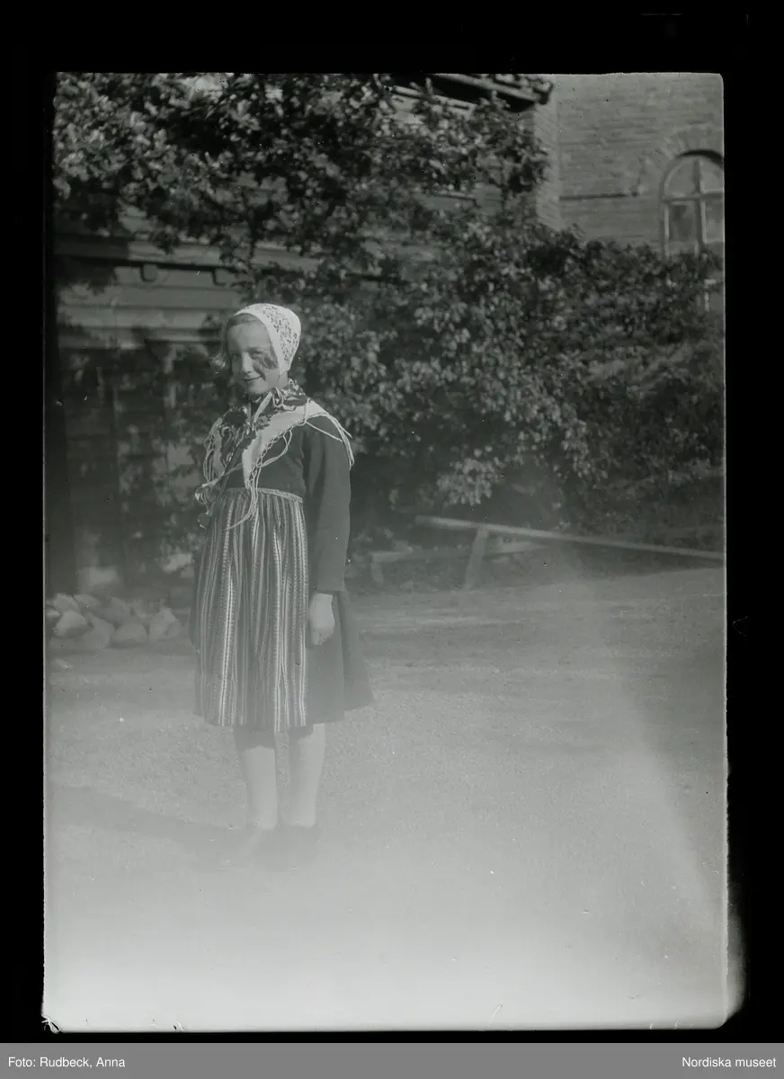 42 Skansen Ringleksbarn. En flicka i folkdräkt, utomhus på Skansen.