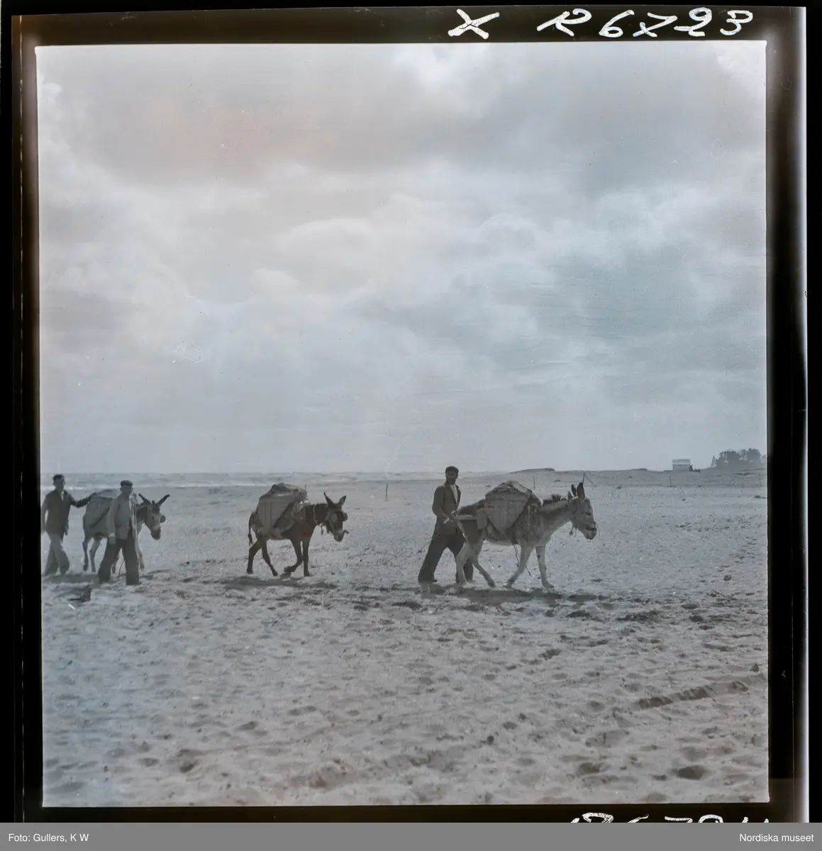 568 F. Stieg Trenter, Torremolinos. Män med åsnor på stranden.