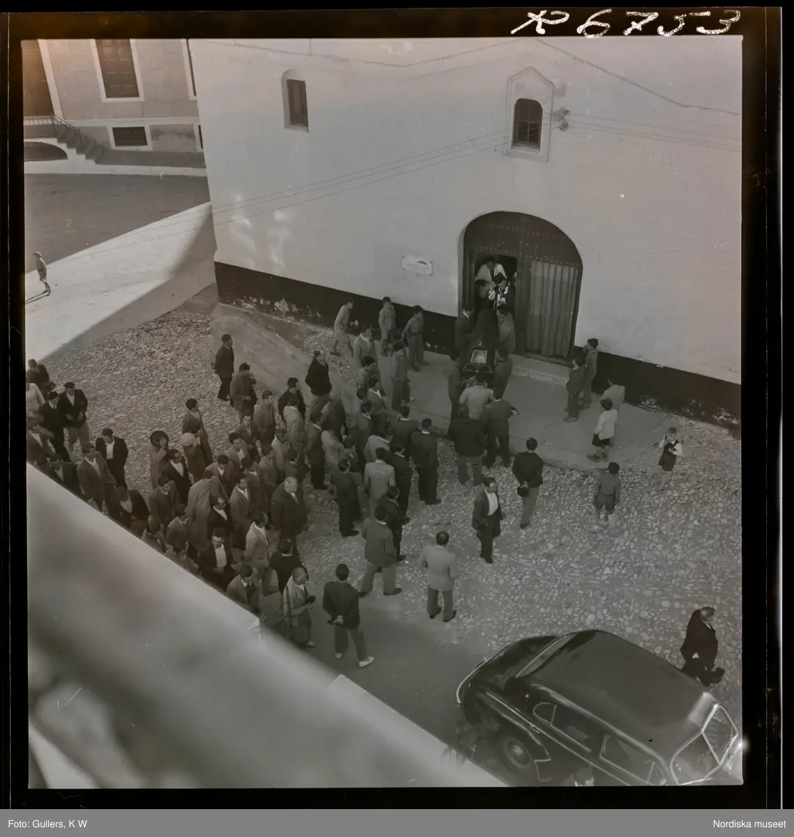 Titel: 568 F. Stieg Trenter, Torremolinos. Begravning. Kistan bärs in i kyrkan.