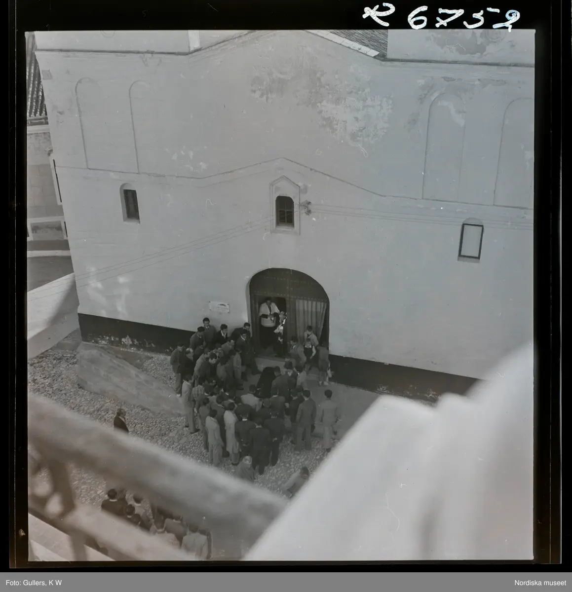 568 F. Stieg Trenter, Torremolinos. Begravning. Kistan framför kyrkdörren.