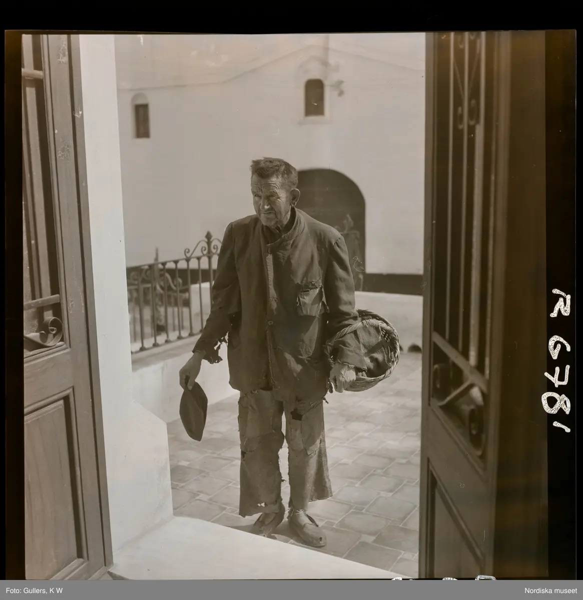 568 F. Stieg Trenter, Torremolinos. En man, troligtvis tiggare, med mycket slitna kläder vid dörren.