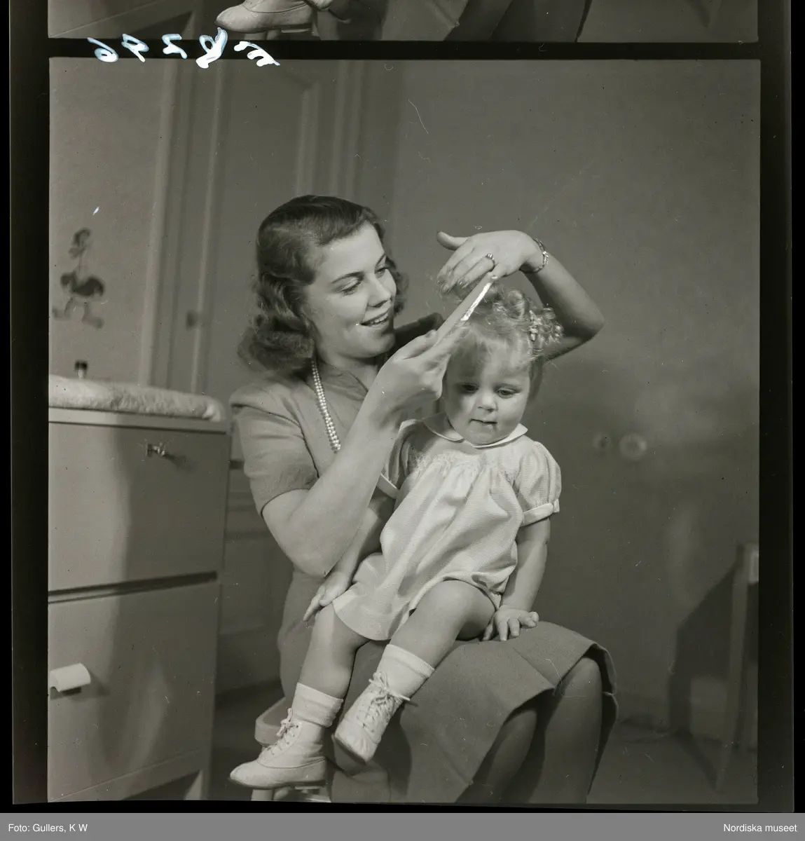583 Sickan Carlsson för 25an Allers. Sickan Carlsson sitter och kammar en liten flicka.