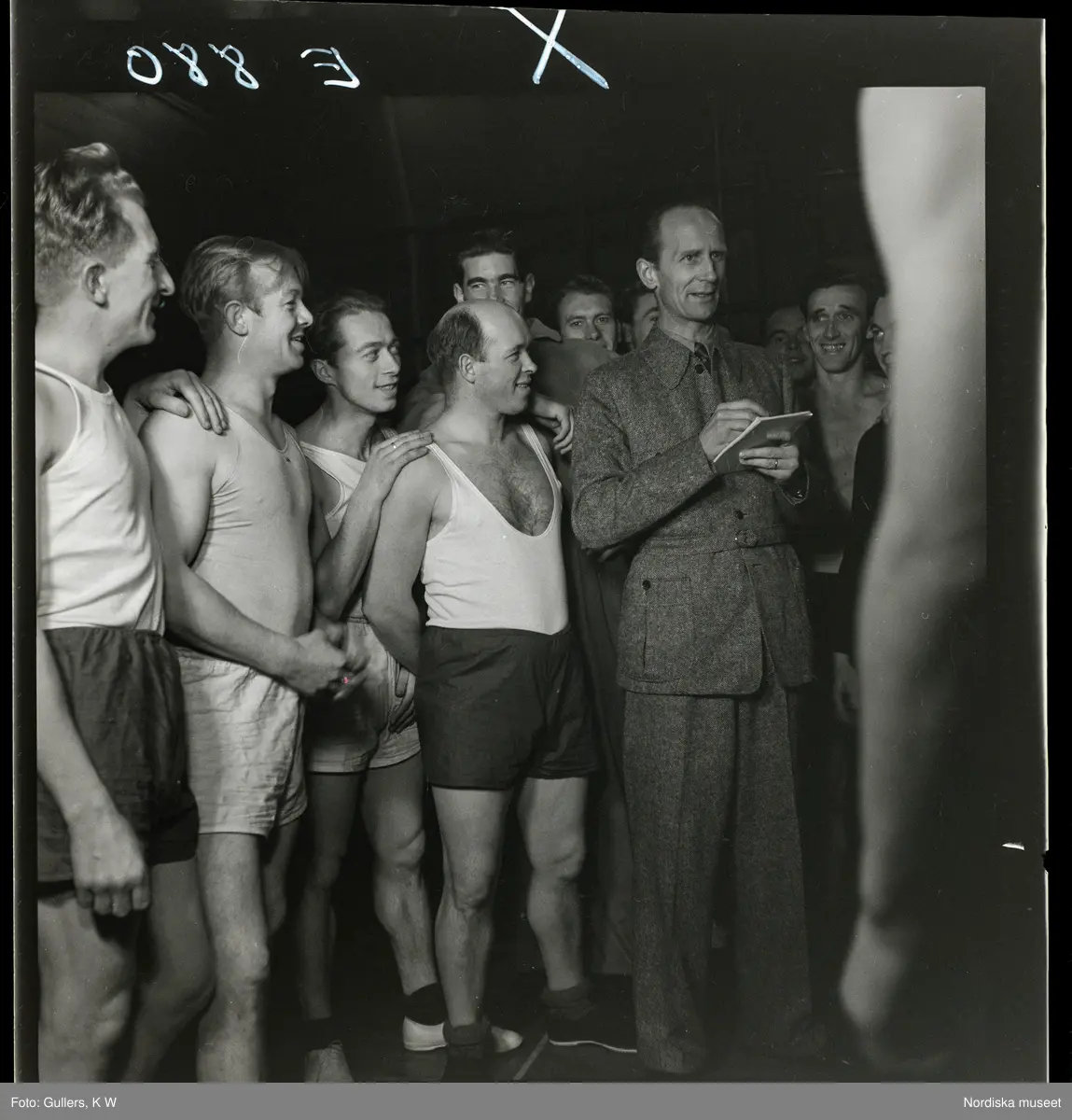 584 Brunsviks Folkhögskola. Män vid gymnastikundervisning.