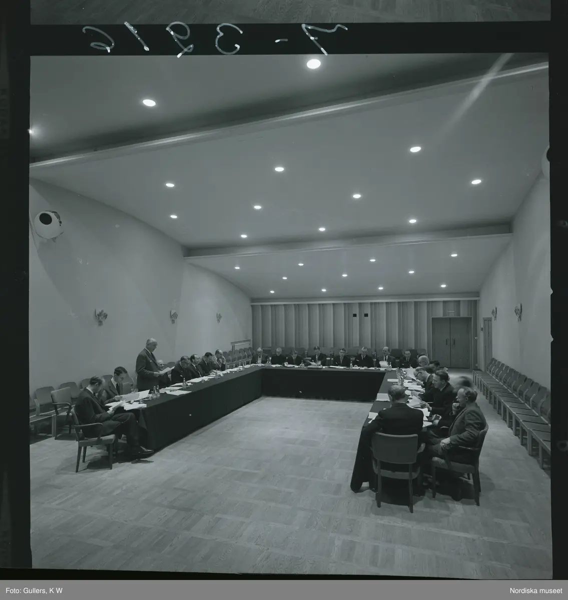 585/8 Facit Tokyo Daberg. Sammanträde vid ett långt bord i U-formation.