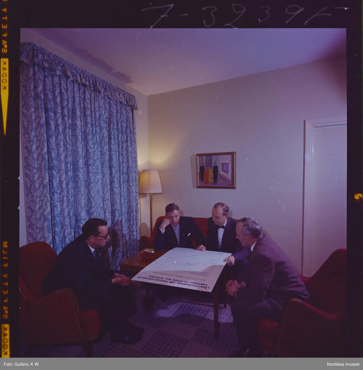 585/8 Facit Tokyo Daberg. En grupp män studerar ett stort ark med grafer.