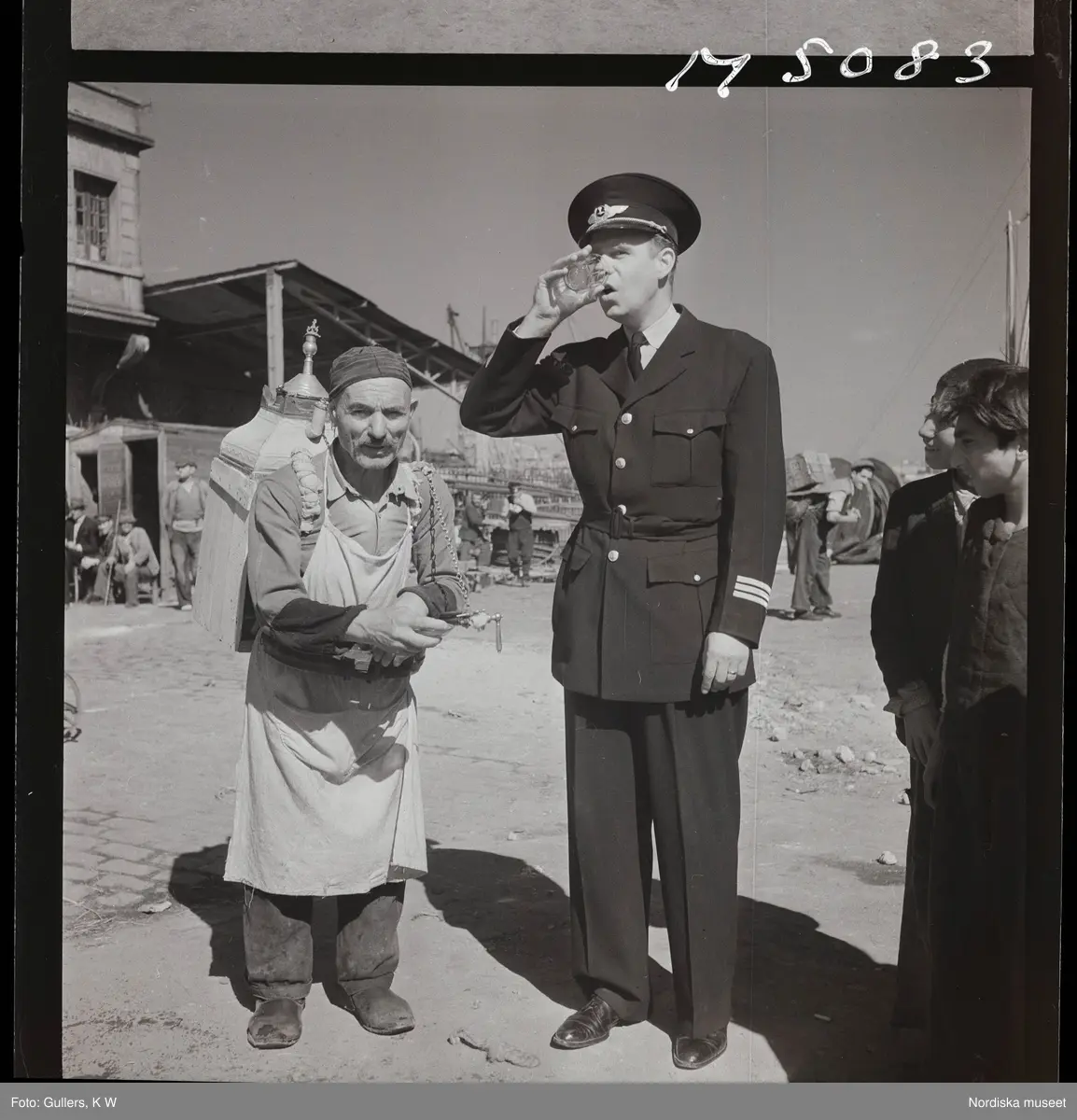 Istanbul. En pilot serveras té av en gatuförsäljare som bär en samovar på ryggen.