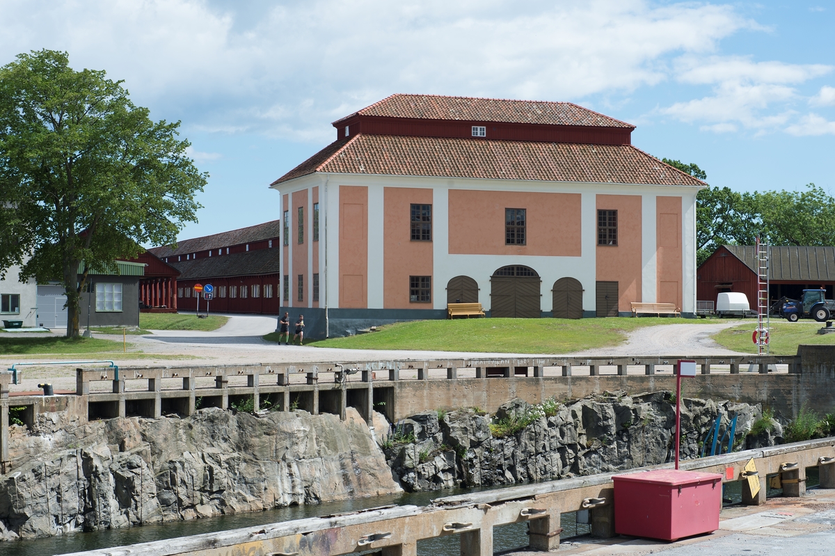 Fotodokumentation av byggnader på Lindholmen i Karlskrona. Polhemsdockan framför repslarebanans nordvästra banhuvud.