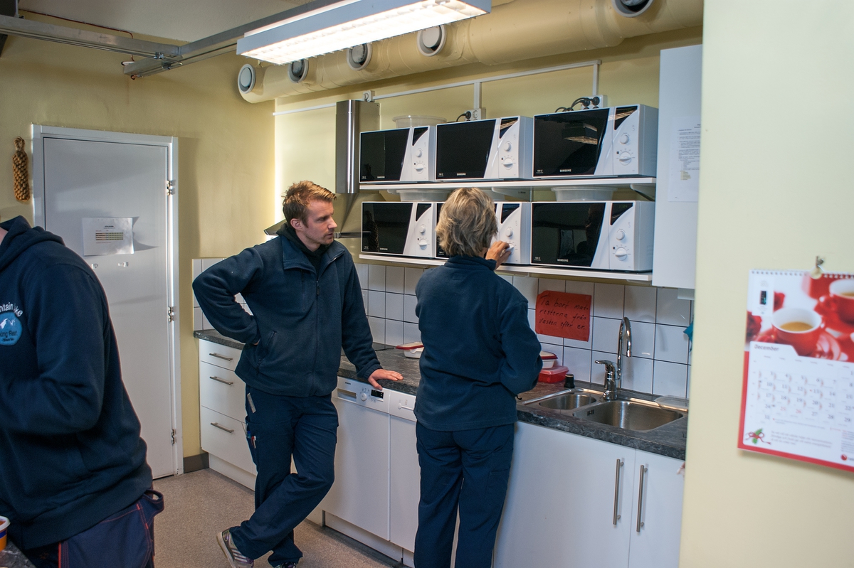 Johan Jönnson och Christina Ulveklint väntar på deras medhavda mat skall bli varm.