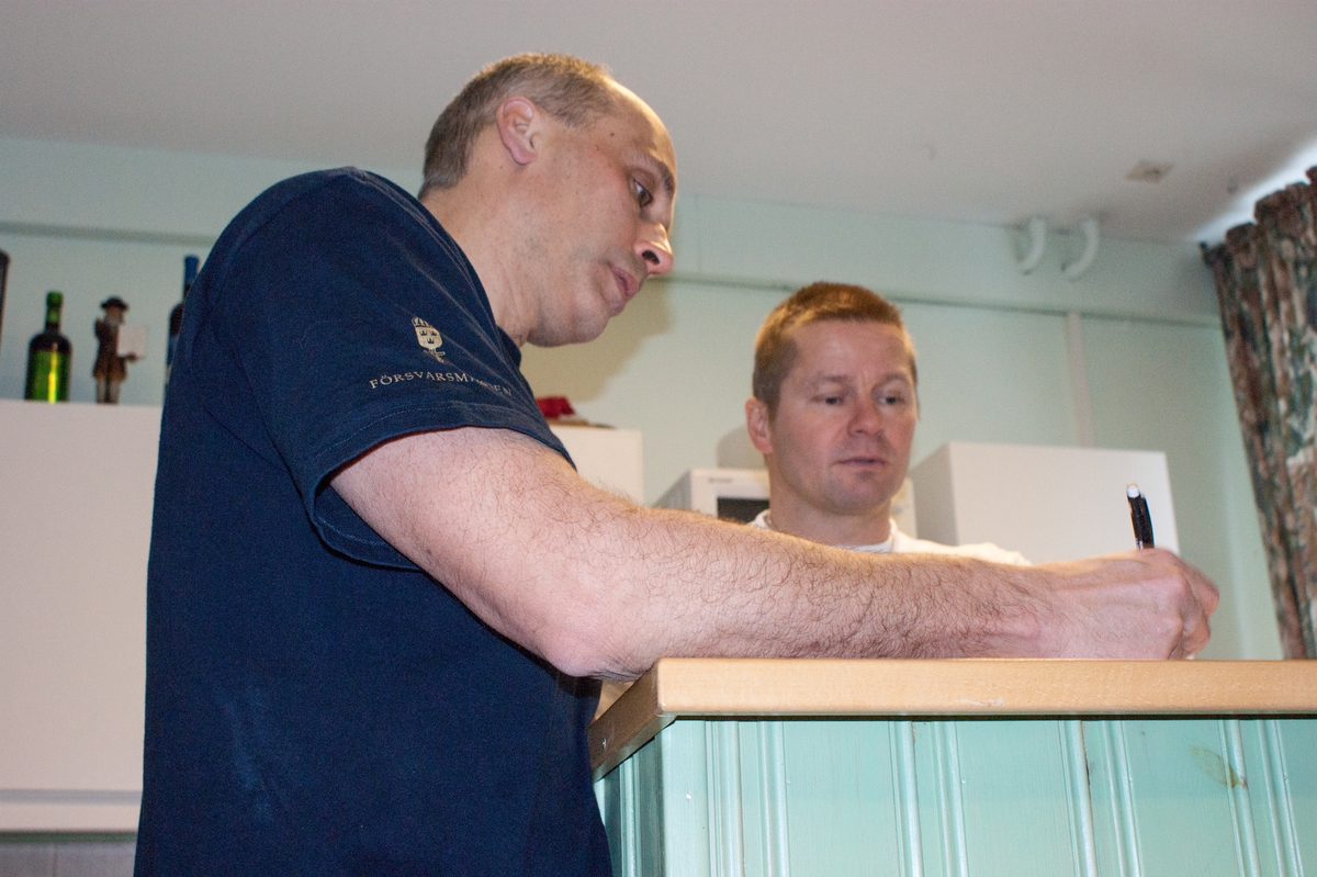 Dyktanken, dykskolan. Tankledare: Michael Elfsberg i svart T-shirt samt Ulf Larsson i vit T-shirt inför uppstigning.