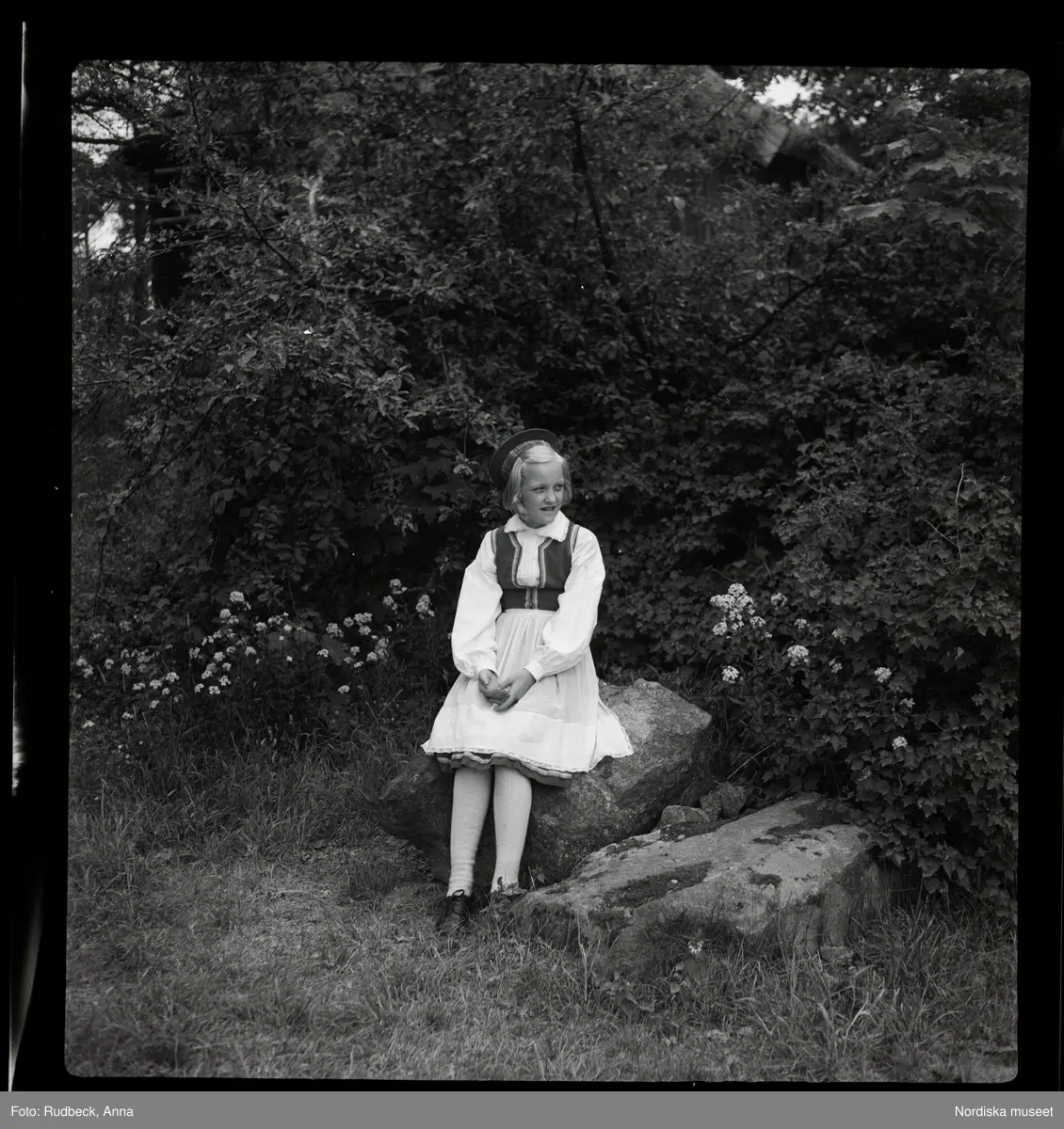 126 Skansen Ringleksbarn. En flicka i folkdräkt, utomhus på Skansen.