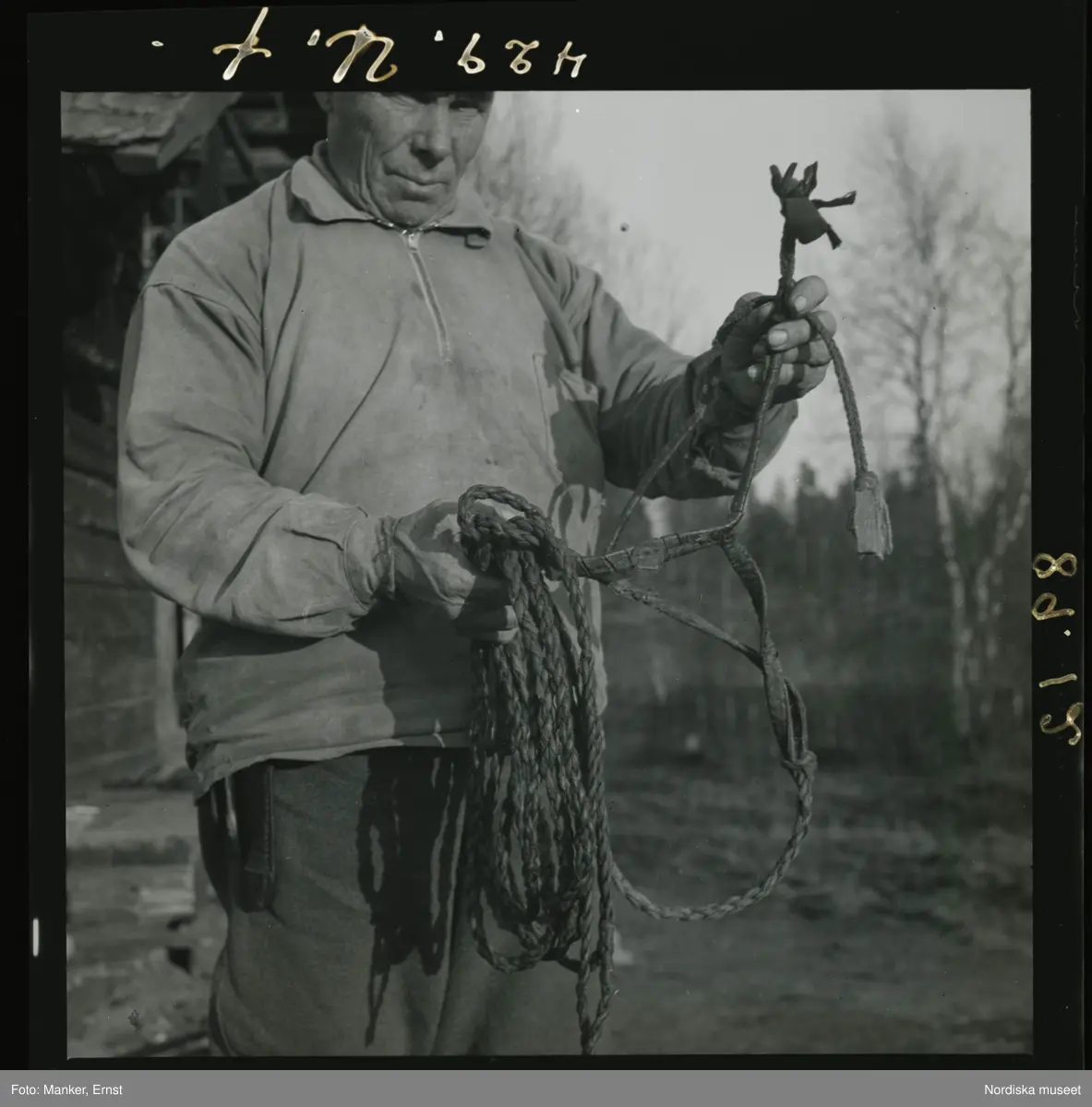 Nils Petter Stenberg visar kördon. Västra Kikkejaur.