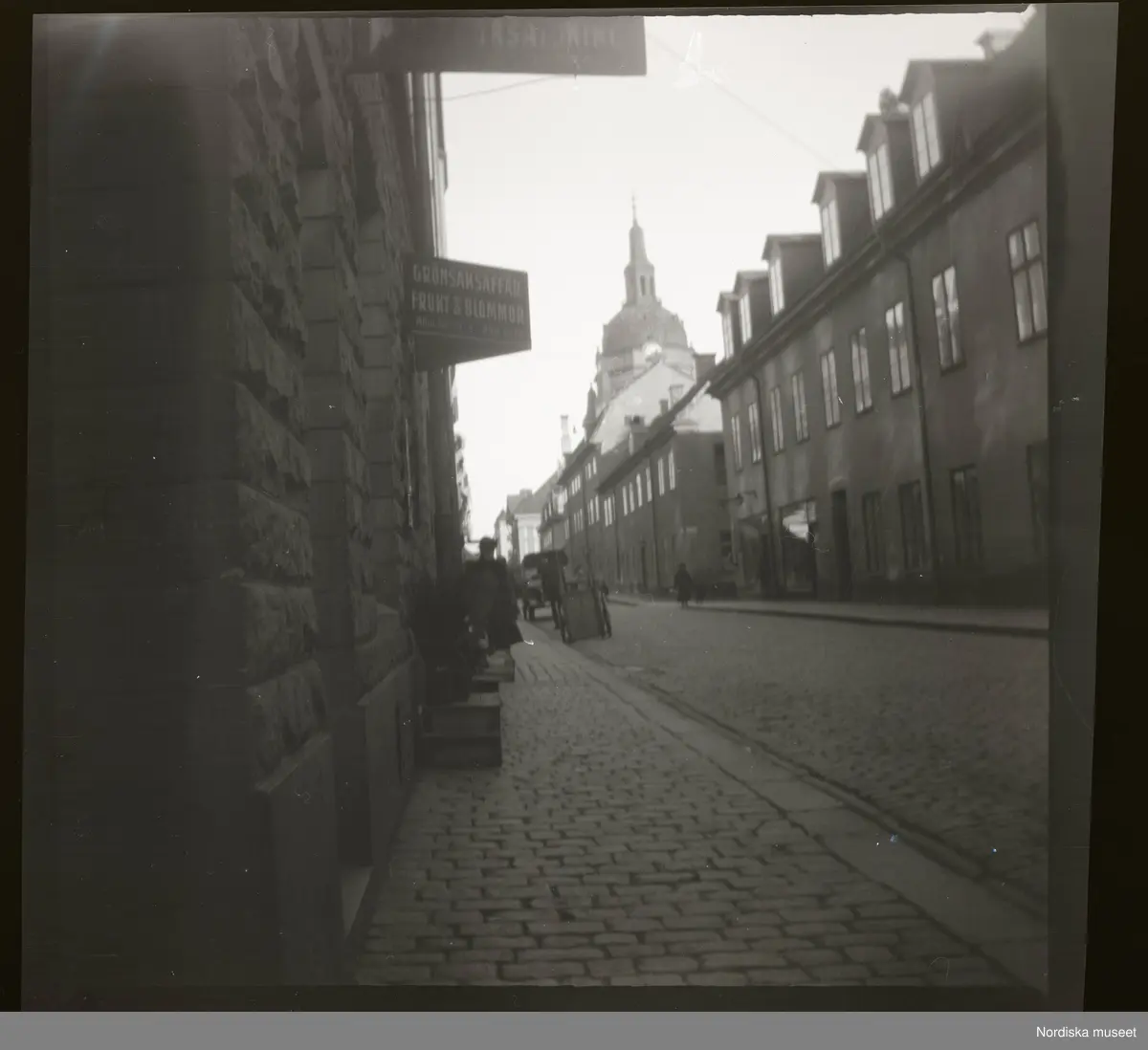 Högbergsgatan på Södermalm. Katarina kyrka skymtar i bakgrunden. Stockholm.