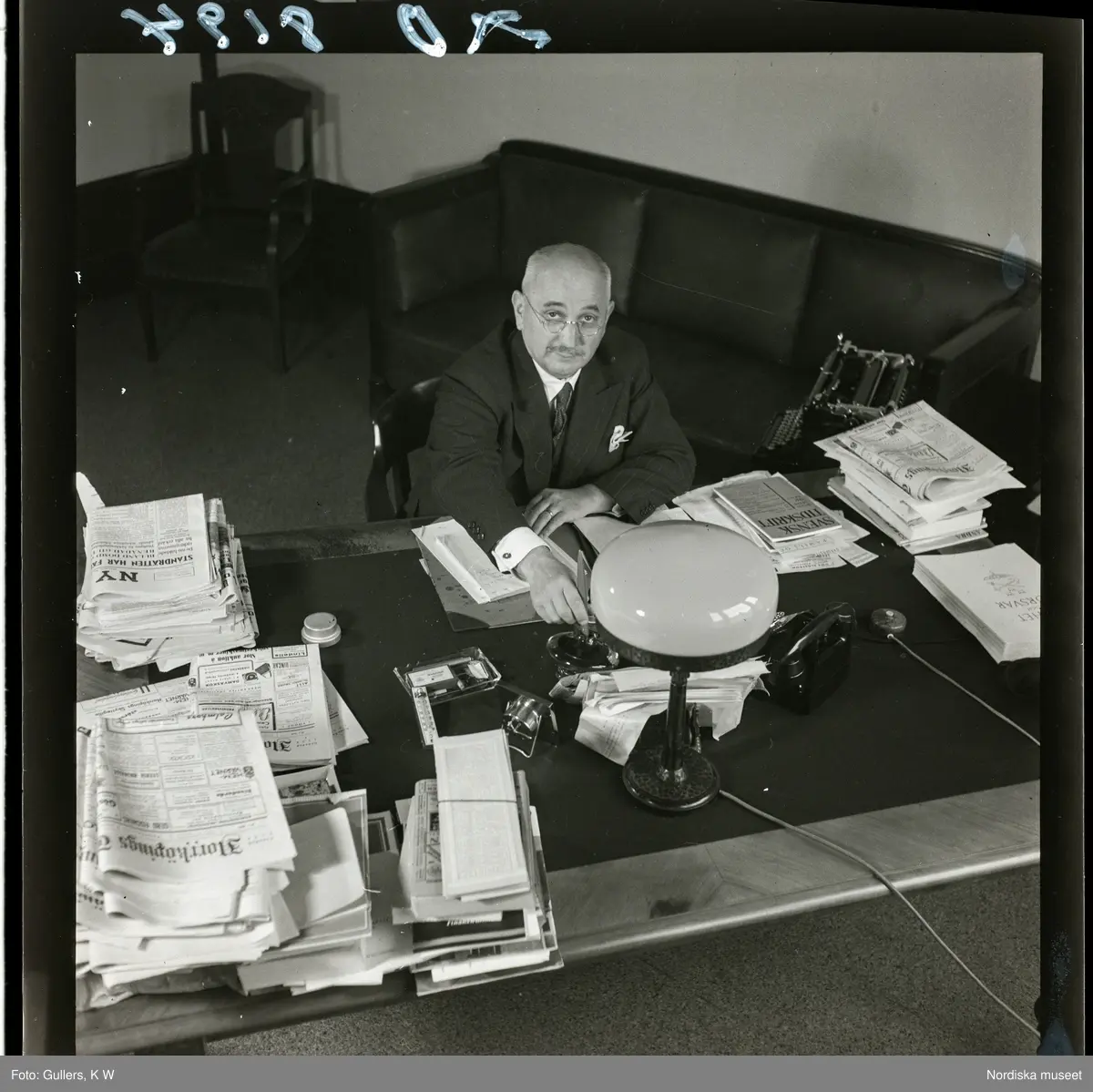 En man vid sitt skrivbord på Norrköpings tidningars redaktion.