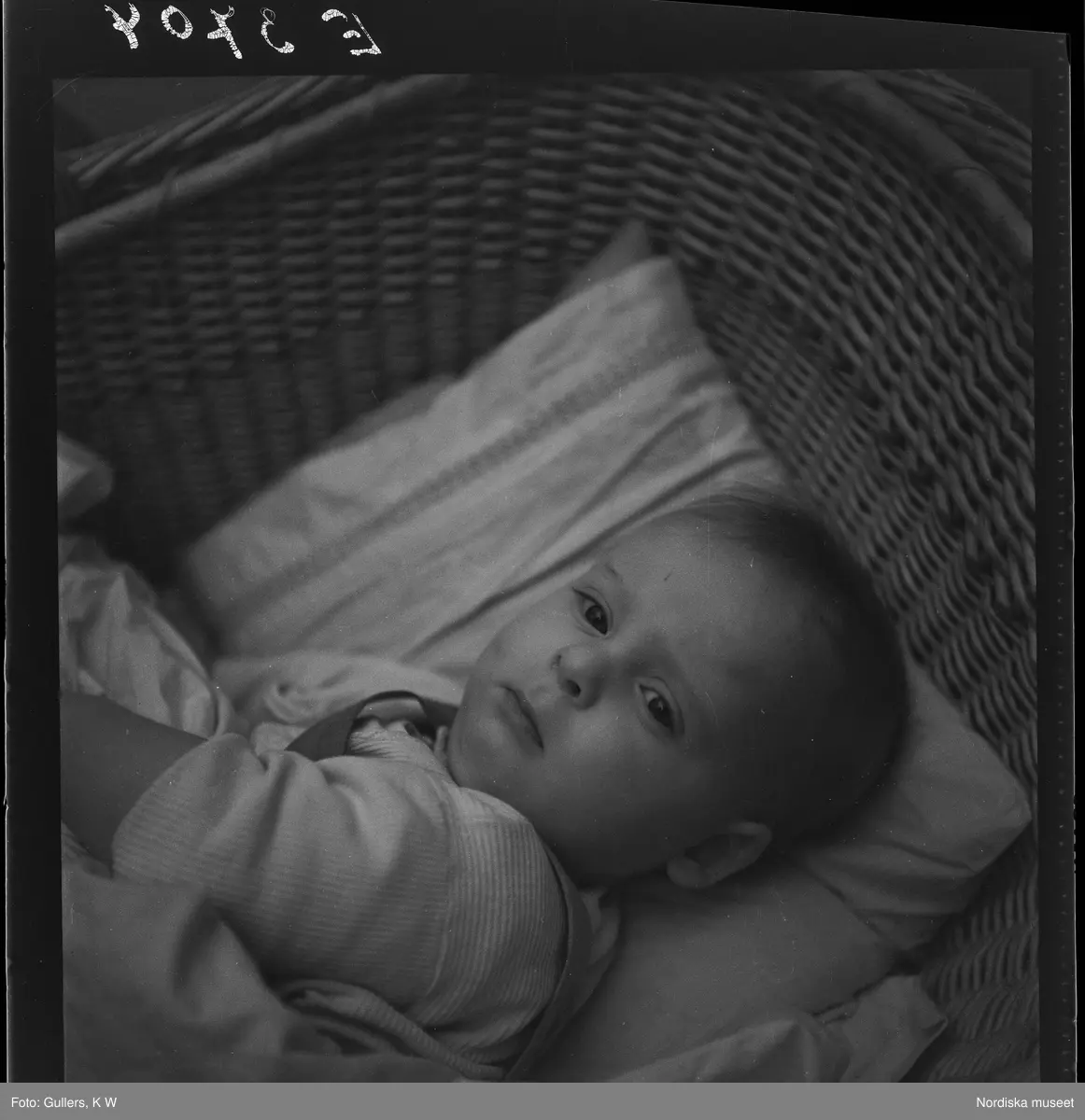 Titel: 513 Red. Karlströmer barn. Ett litet barn i sin rottingsäng/vagga.