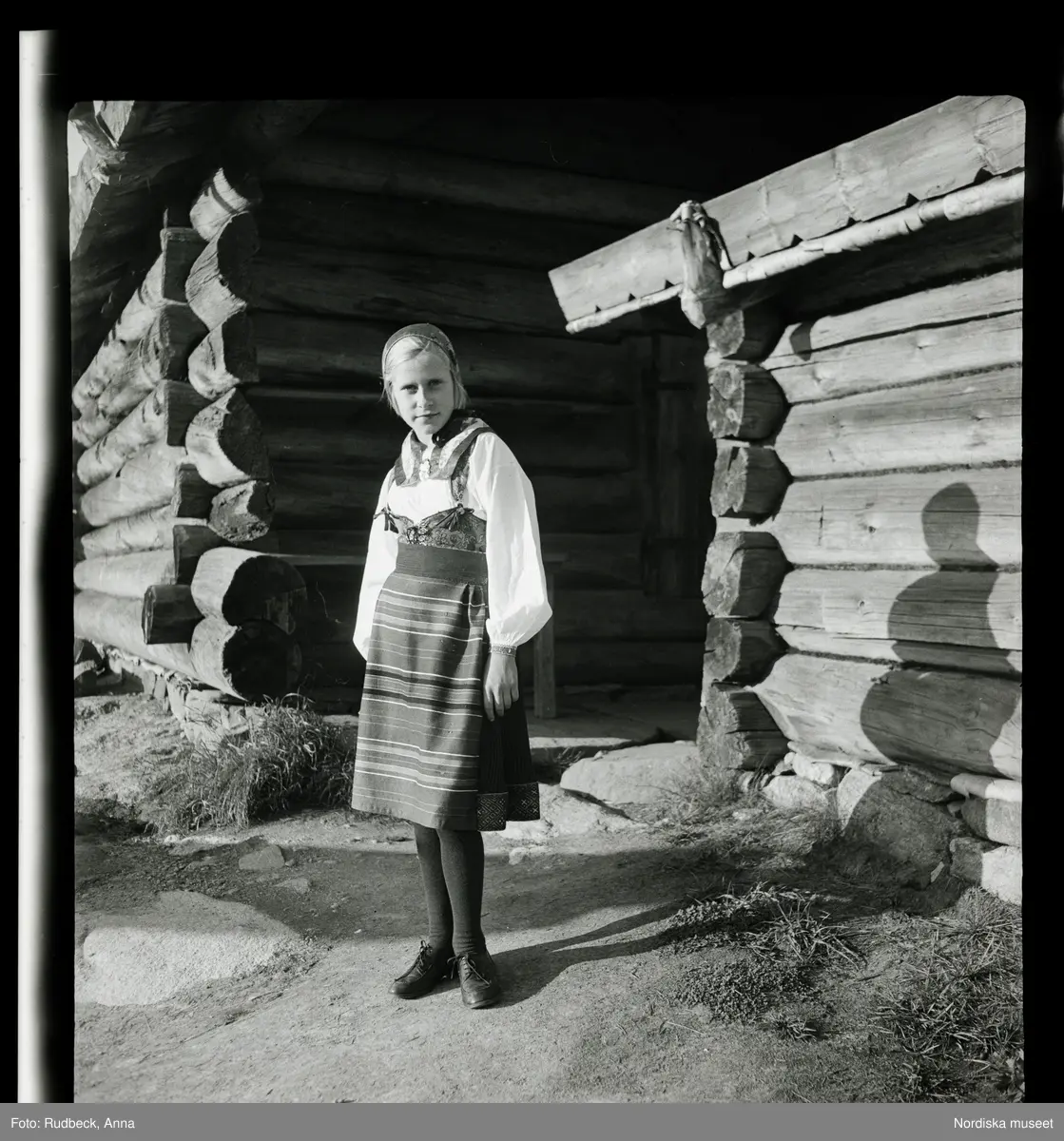 117 Skansen Ringleksbarn. En flicka i folkdräkt, utomhus på Skansen.
