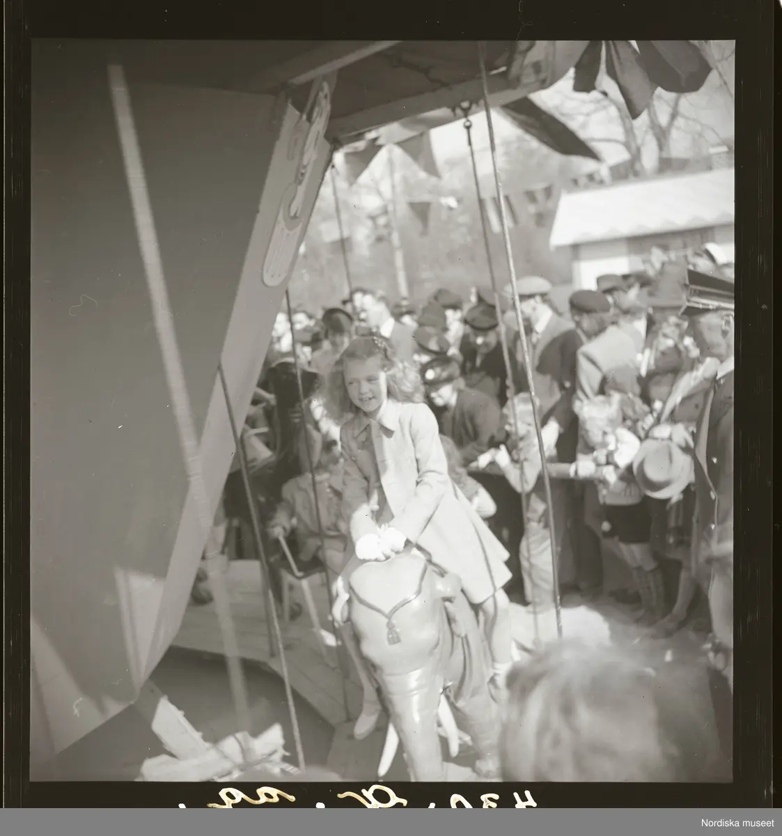 En flicka åker karusell.