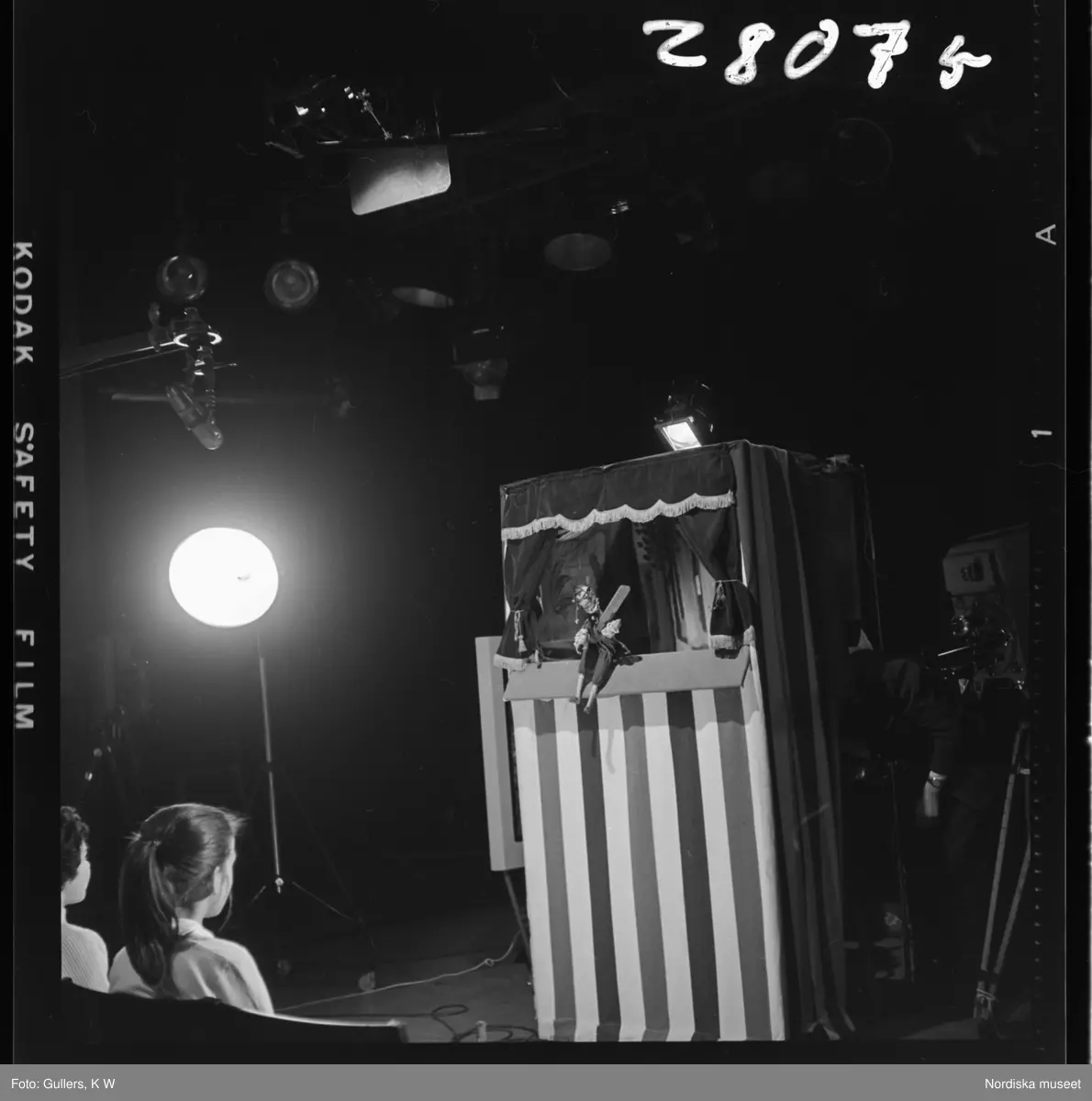 Titel: Dockteater. Barn sitter publik i en TV-studio.