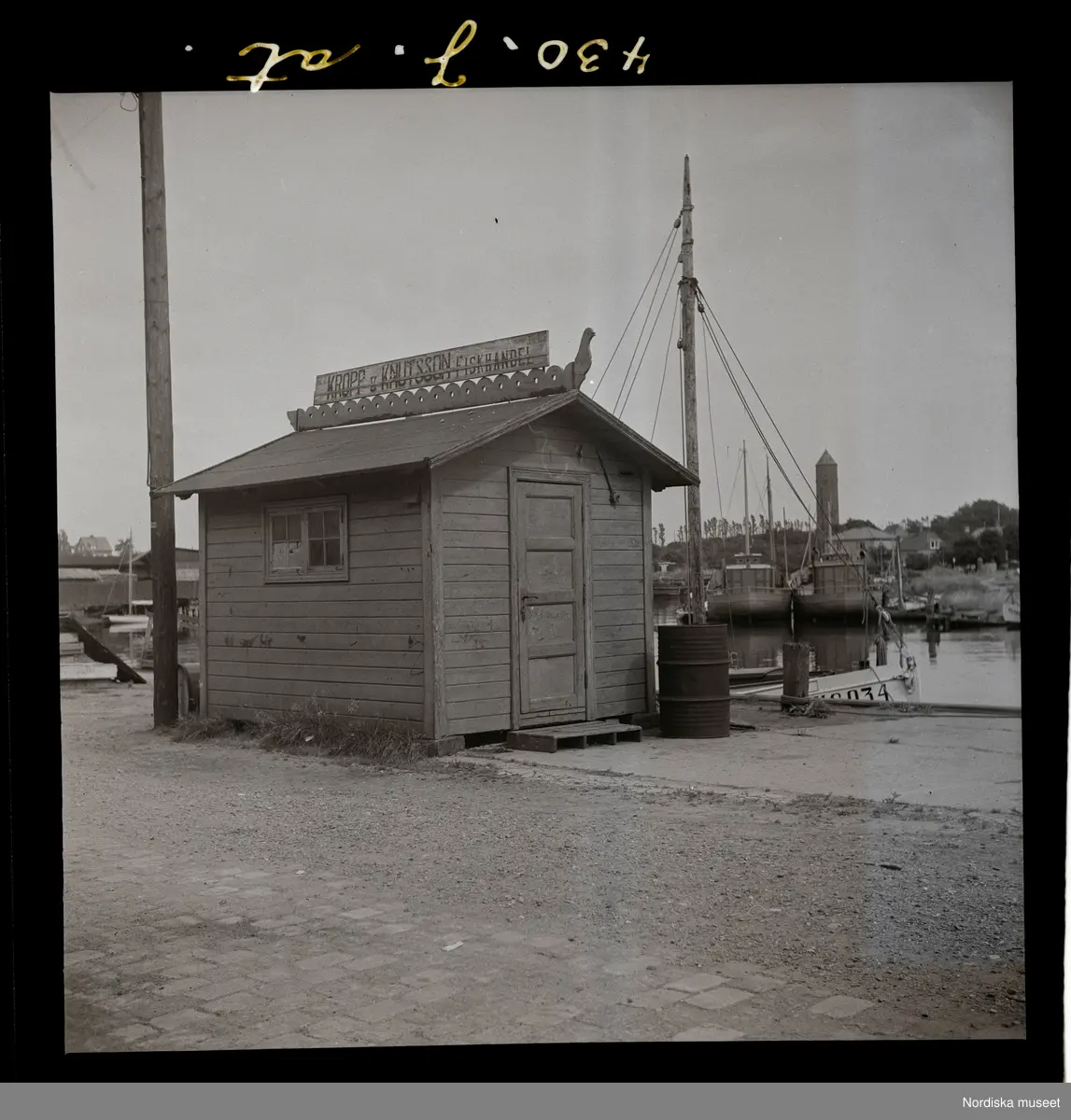 Text på montering i arkivet: Kajen vid Kajgatan. Kropp & Knutsson fiskhandel.