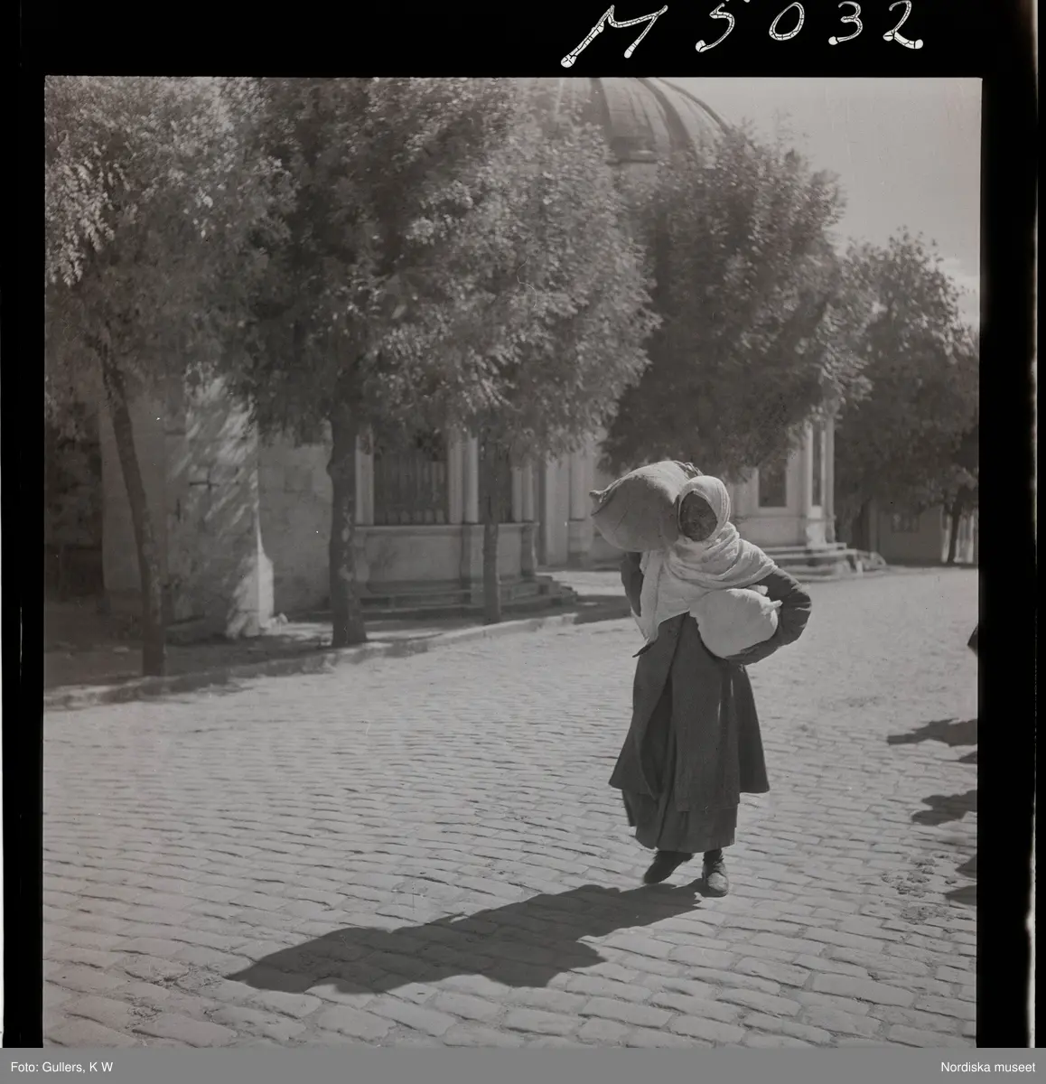 1717/L Istanbul allmänt. En kvinna passerar bärandes på säckar.