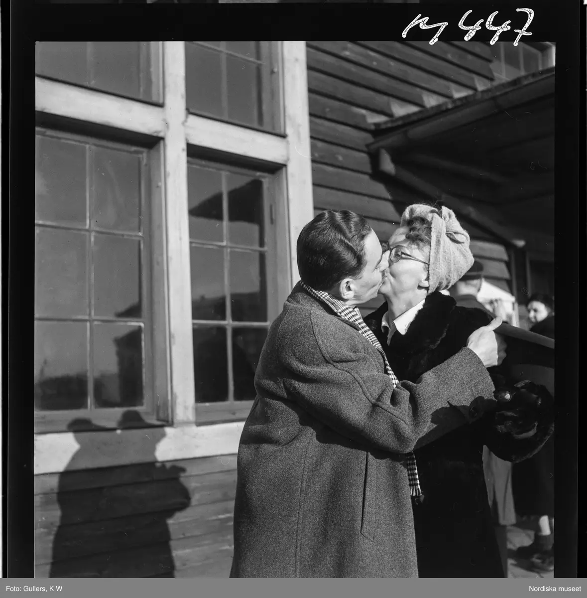 513 E Redaktör Runar Karlströmer hem från Danmark. Runar Karlströmer ger en kvinna en puss på munnen.