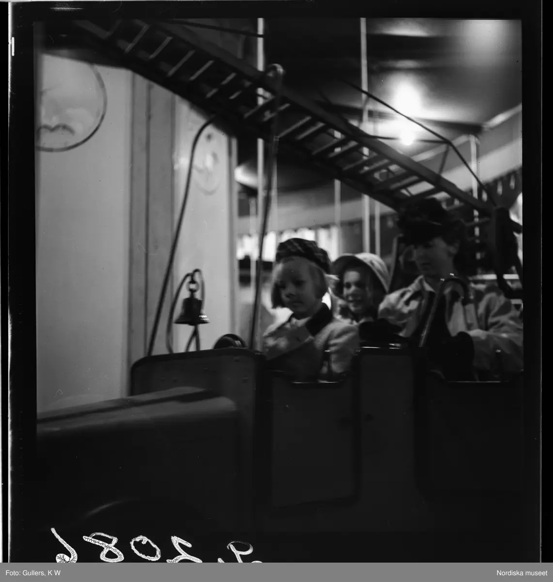 513 Red. Karlströmer. Barn på ett nöjesfält, tåg på räls.