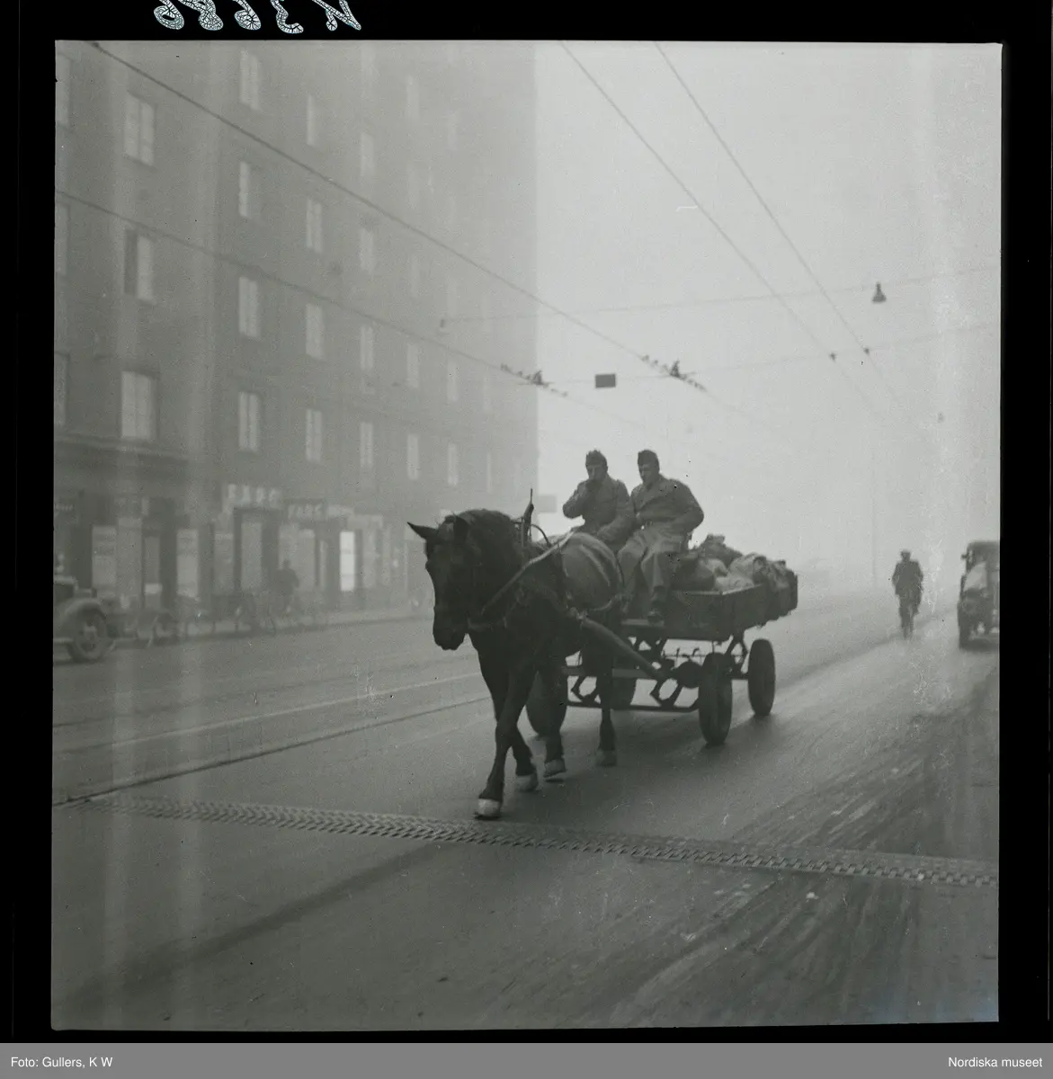 542/B Dimma. Häst och vagn. Två män på vagnen.