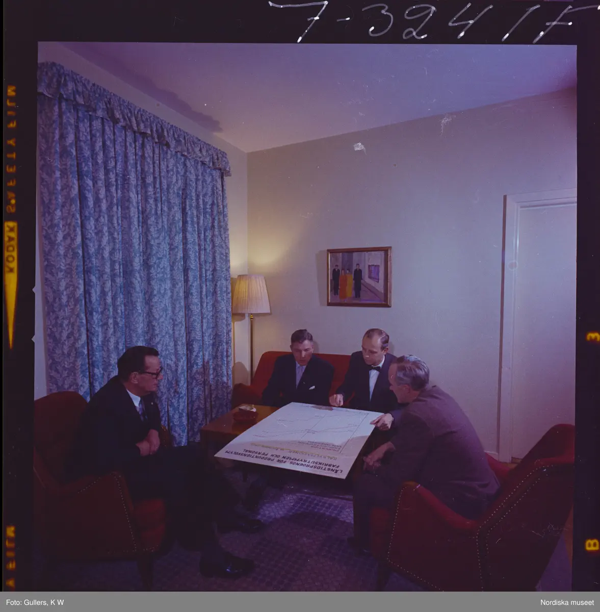 585/8 Facit Tokyo Daberg. En grupp män studerar ett stort ark med grafer.