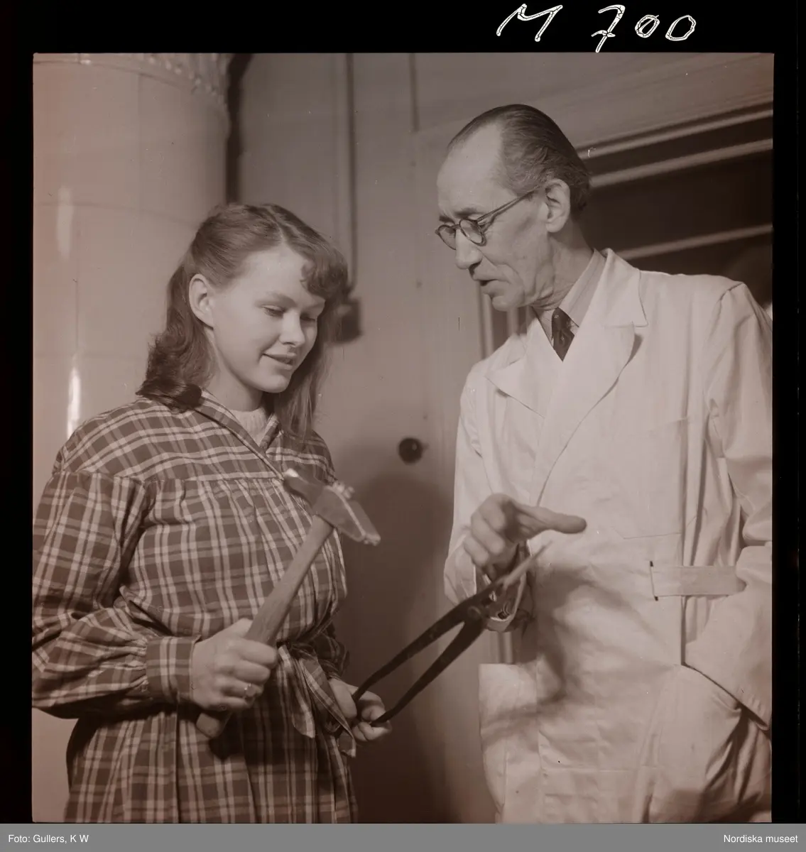 1677 Konstfackskolan. Lärare instruerar elev i metallsmide.