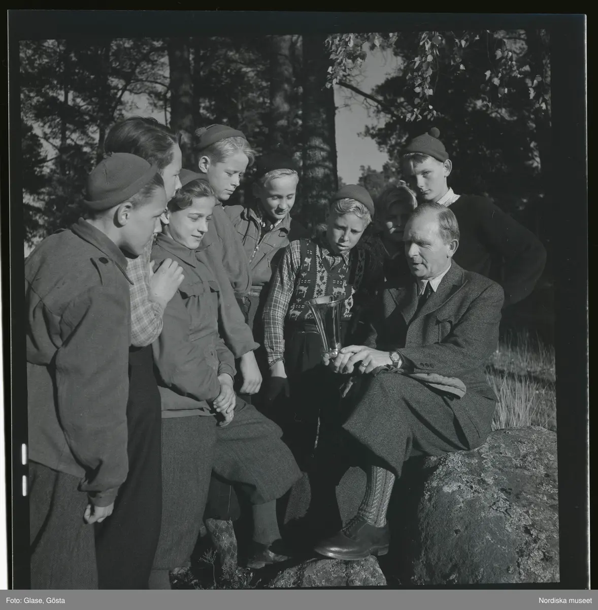 Bromma skytteföreningens propagandaskytte för folkskolorna i Bromma (rektor Iverius med pojkar).