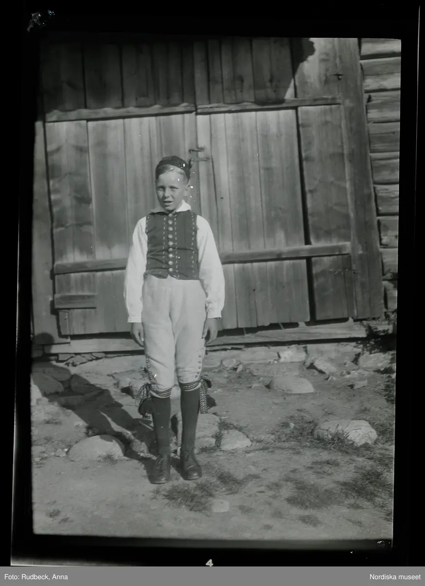 47 Skansen Ringleksbarn. En pojke i folkdräkt, utomhus på Skansen.