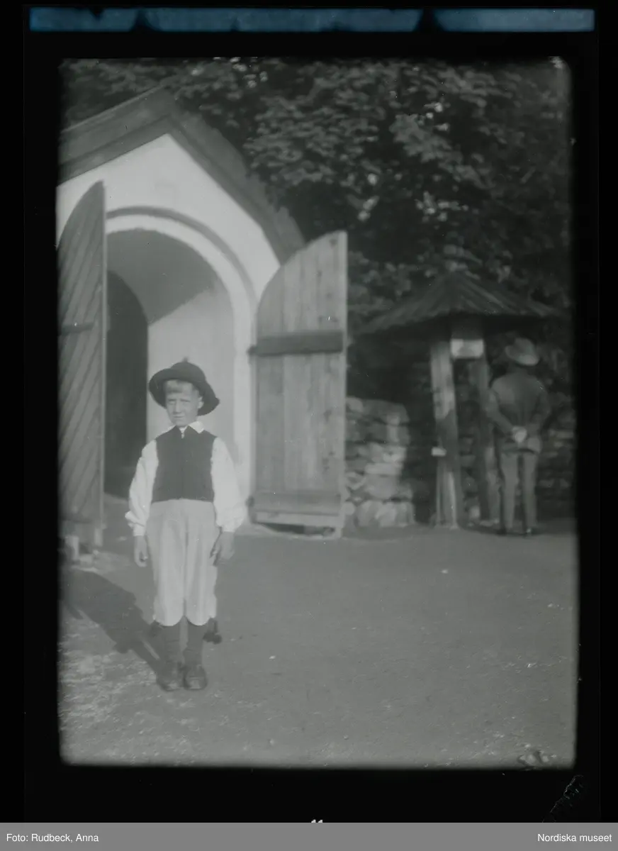 54 Skansen Ringleksbarn. En pojke i folkdräkt, utomhus på Skansen.