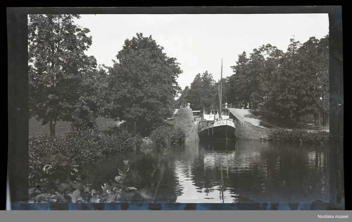 Ångfartyget S/S Pius passerar i Strömsholms kanal, Skantsens sluss.
