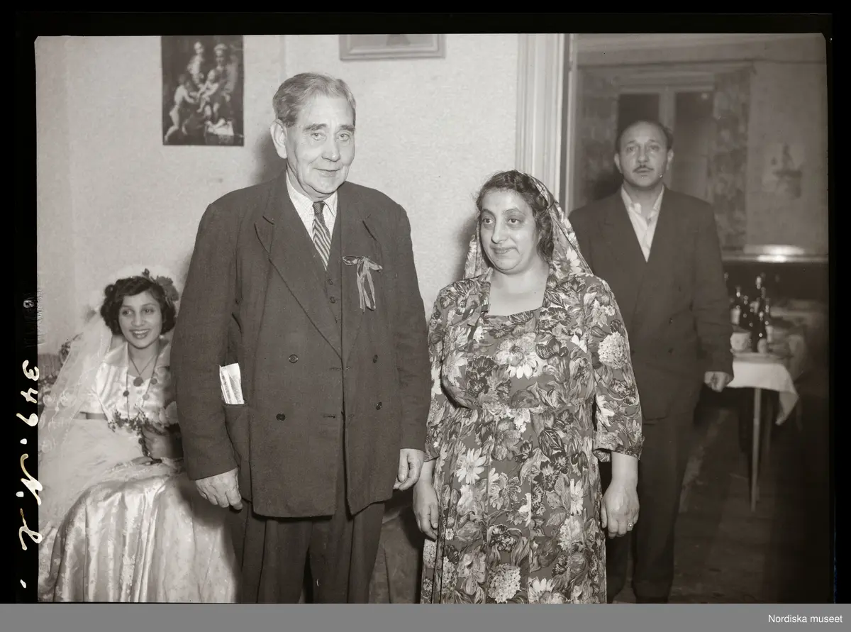 Porträtt av en man och en kvinna, gäster på en bröllopsfest.