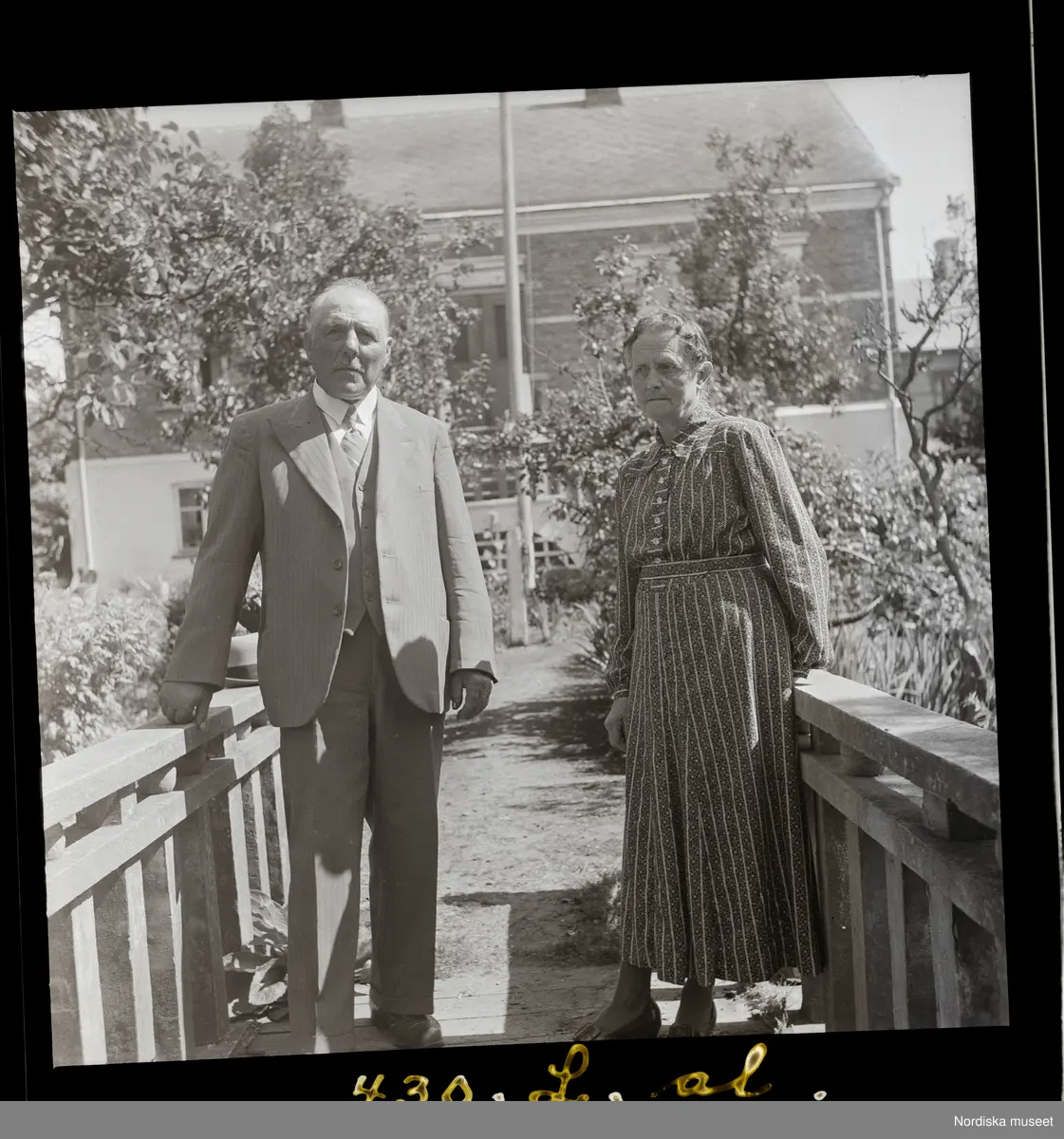 Text på montering i arkivet: Fiskaren Anders Petter Persson och hans hustru i trädgården.