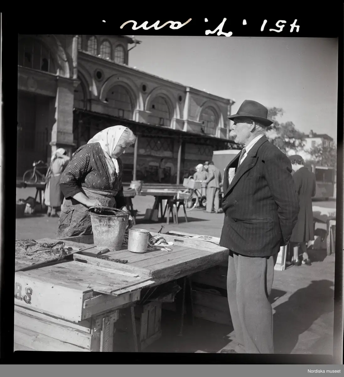 Handel framför saluhallen. Fisktorget, Karlskrona.