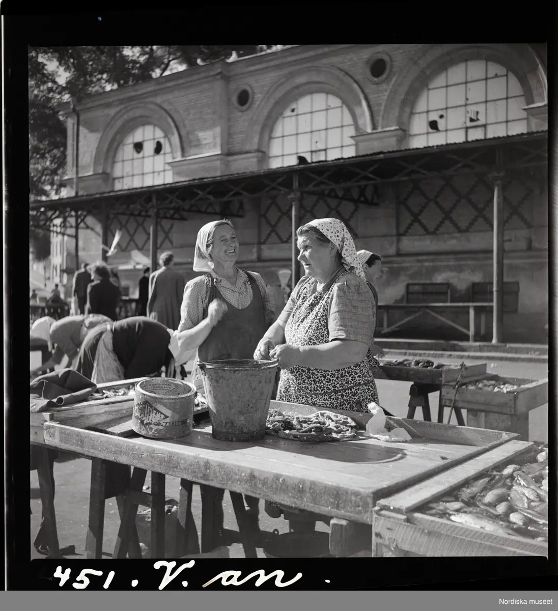 Handel framför saluhallen. Fisktorget, Karlskrona.