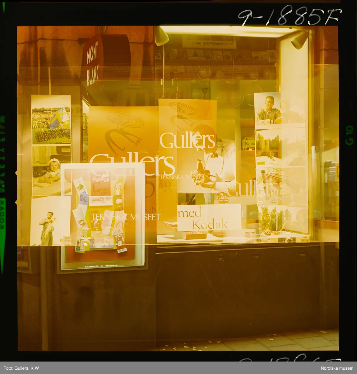 Titel: Skyltfönster med reklam för K W Gullers 25 år fotoutställning på Tekniska museet.