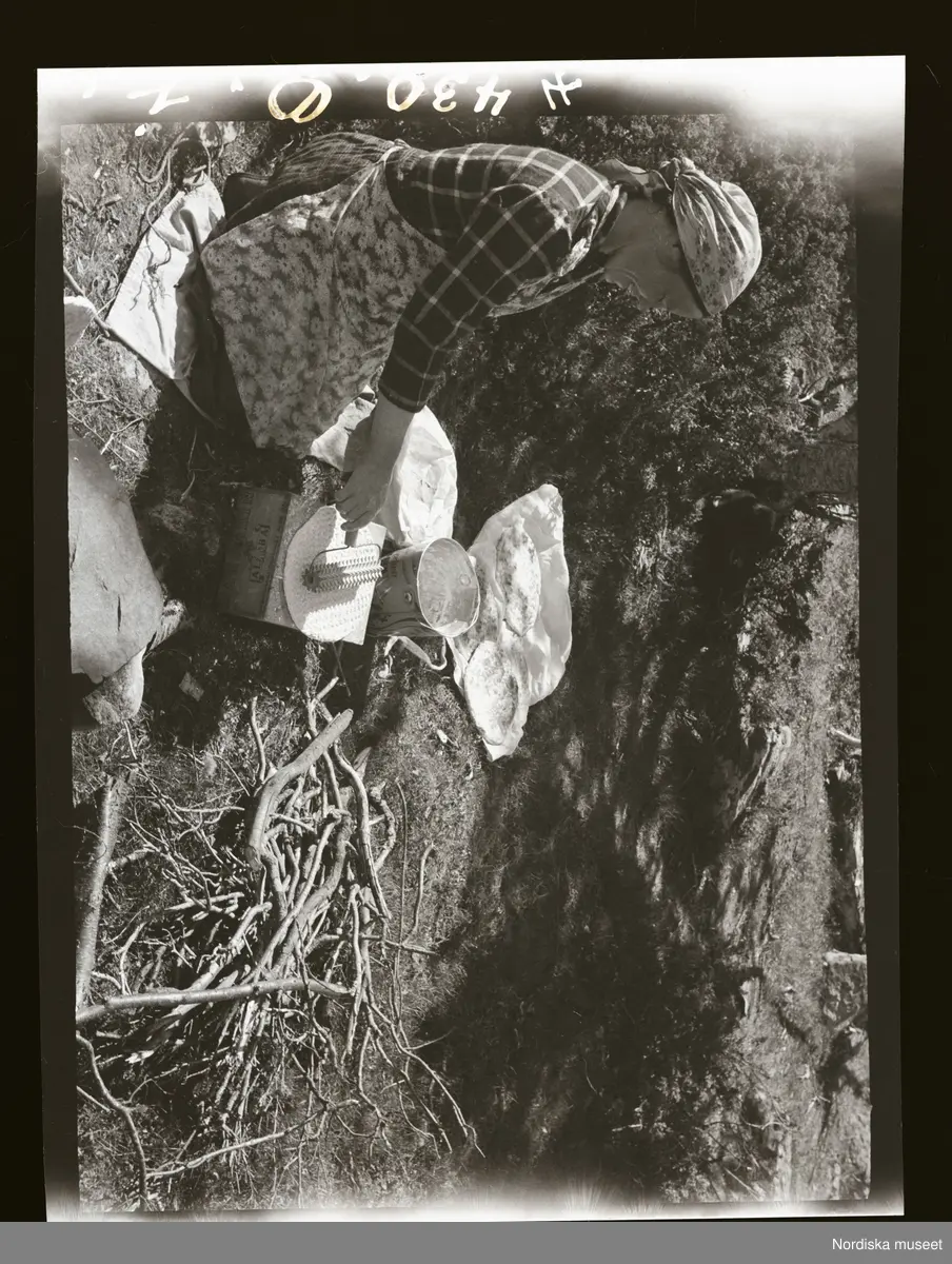 Kvinna bakar tunnbröd utomhus.