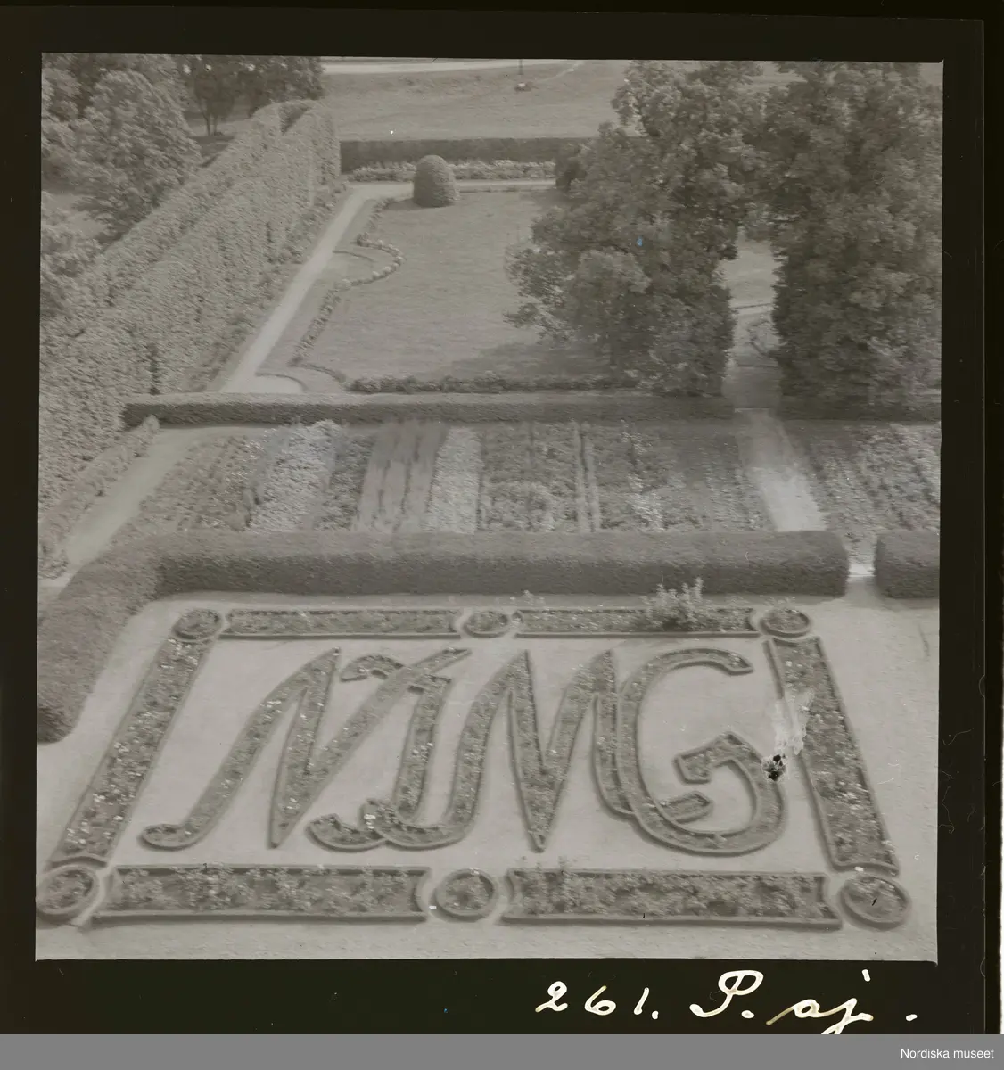 Svenstorps slott, Skåne. Plantering som bildar initialerna NJMG.