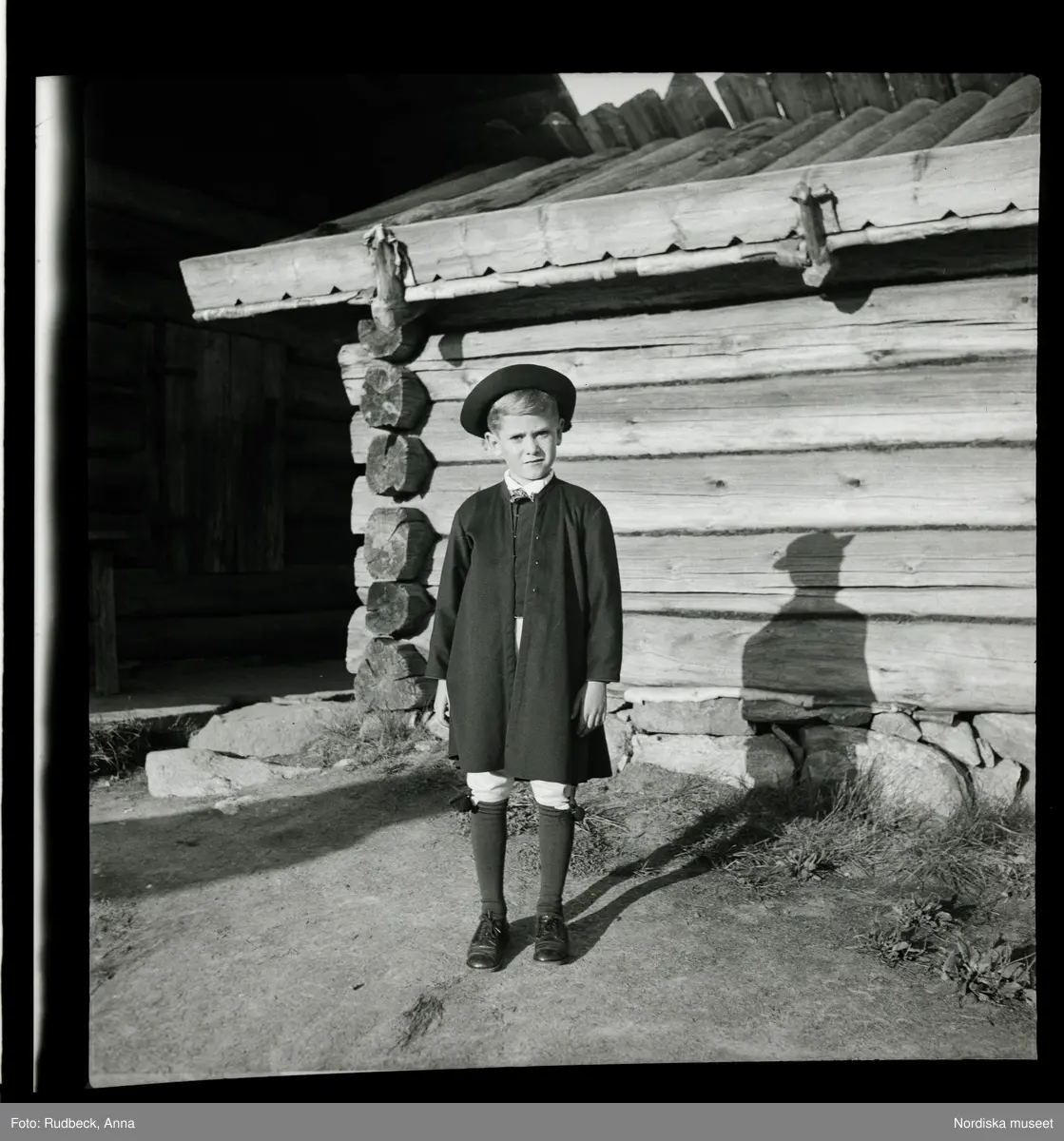 112 Skansen Ringleksbarn. En pojke i folkdräkt, utomhus på Skansen.