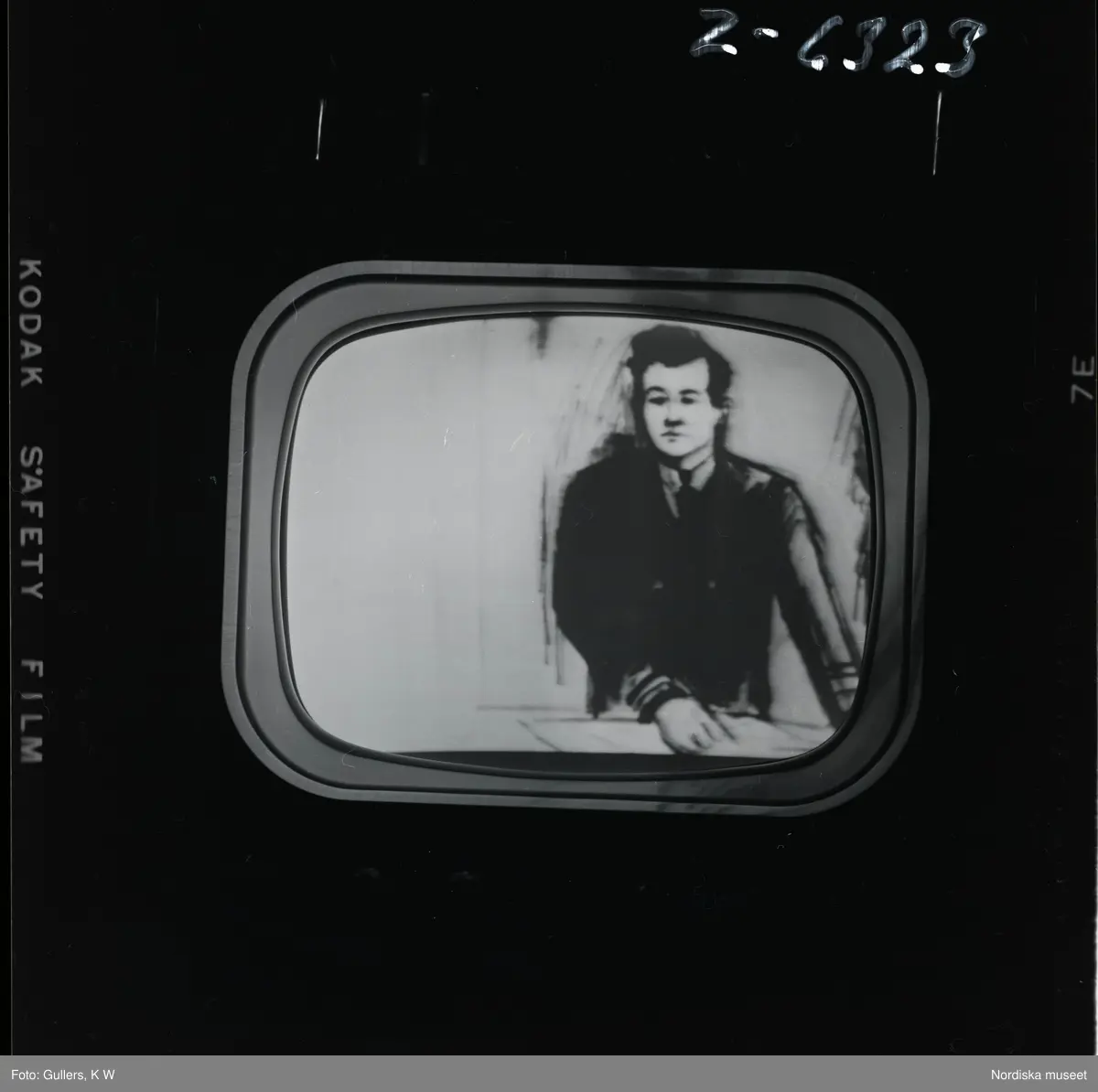 2401 Television Tak för TV; Sändning; Från utsändn. T-V-Studion + KWG på TV . Fotograf K W Gullers i TV-studio vid inspelning av fotografi-kurs. "Gullers fotokurs"