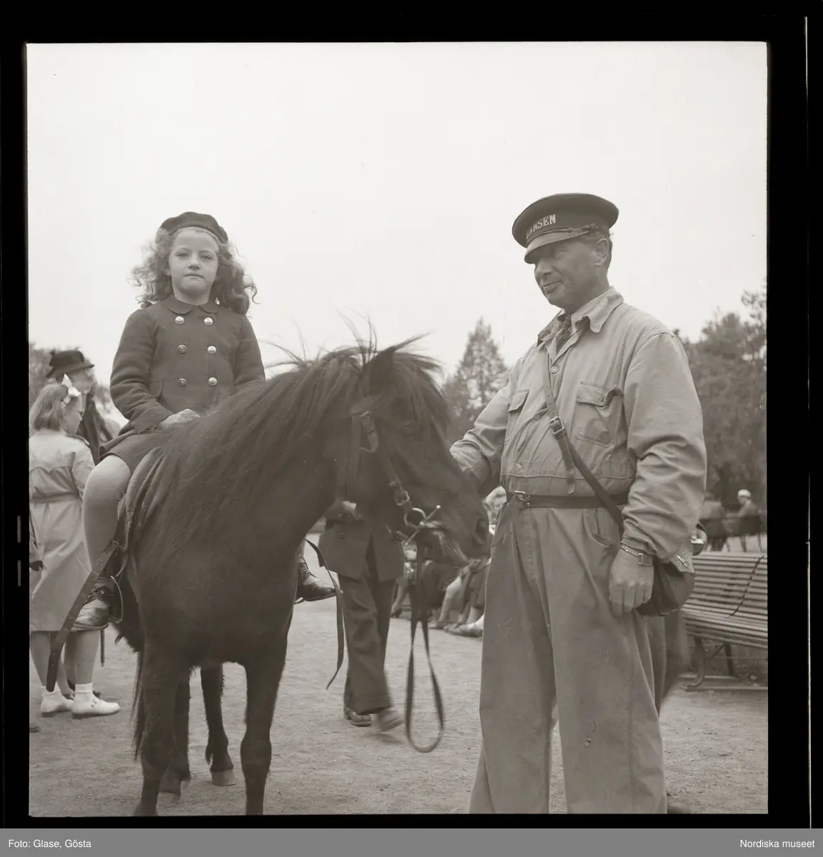 Skansen, småbarn rider på ponny, 12 juni 1944.