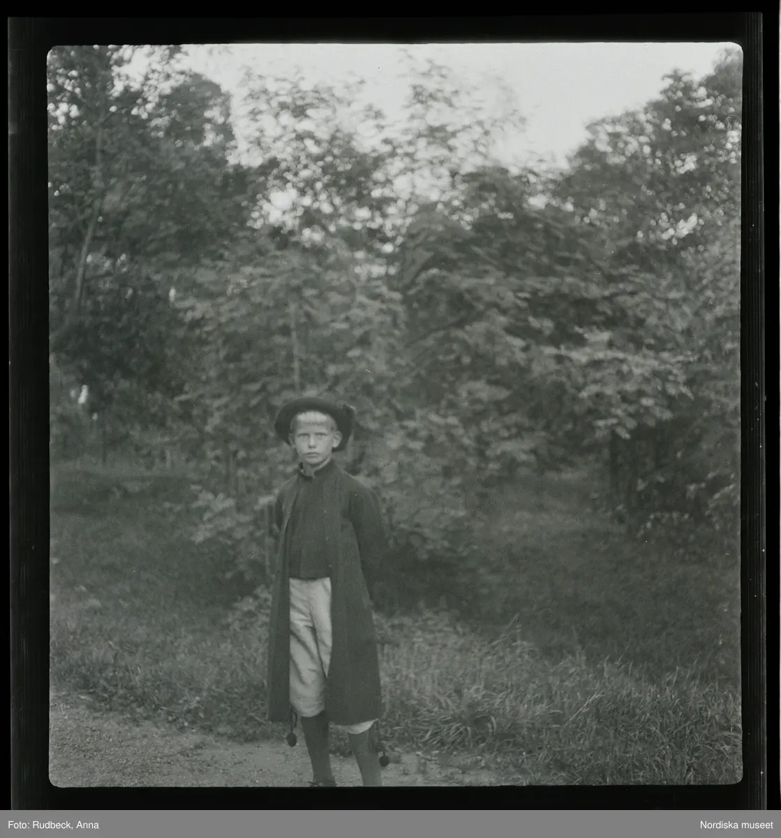 81 Skansen Ringleksbarn. En pojke i folkdräkt, utomhus på Skansen.