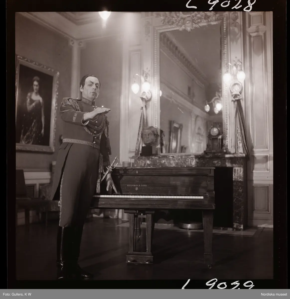 561 A Operareportage för tidningen Vi. Man i scenkostym/uniform vid flygel.