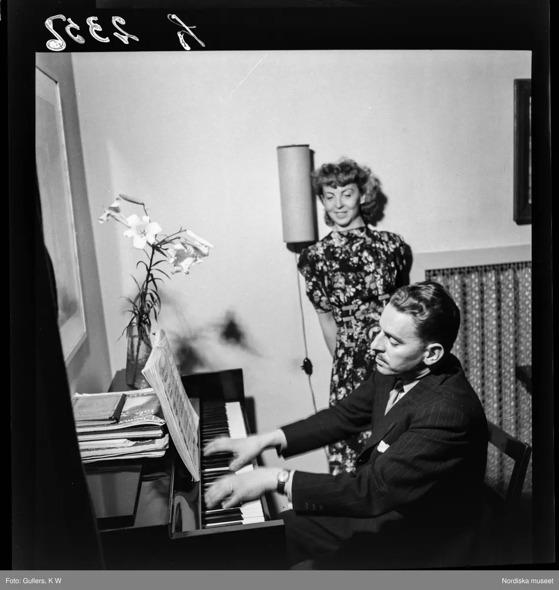 513 A Runar Karslströmer Hemmiljö. Runar Karlströmer spelar piano för sin fru.