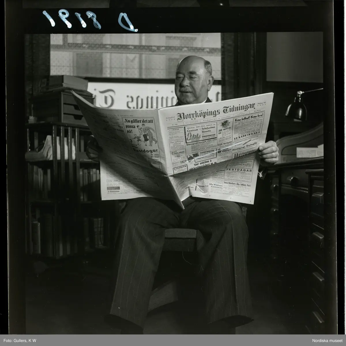 En man sitter på sitt kontor på Norrköpings tidningar och tidningen.