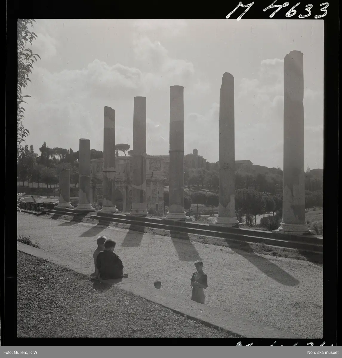 1717/B Rom. Barn vid kolonnruiner i Forum Romanum.
