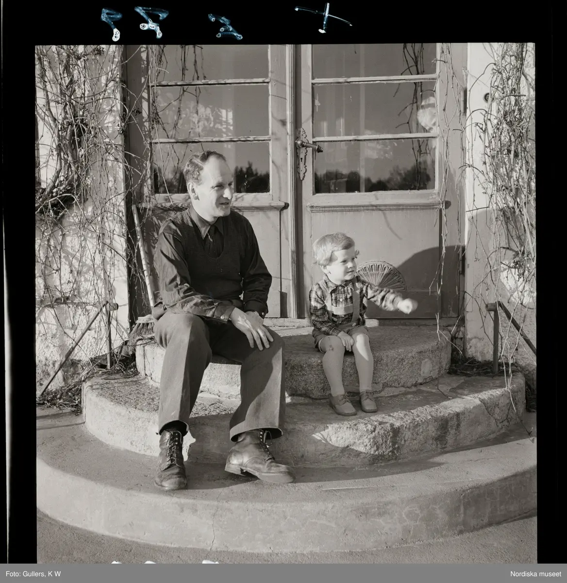 564 Vårgårda Havregryn. En man och en liten pojke sitter ute på en trapp.