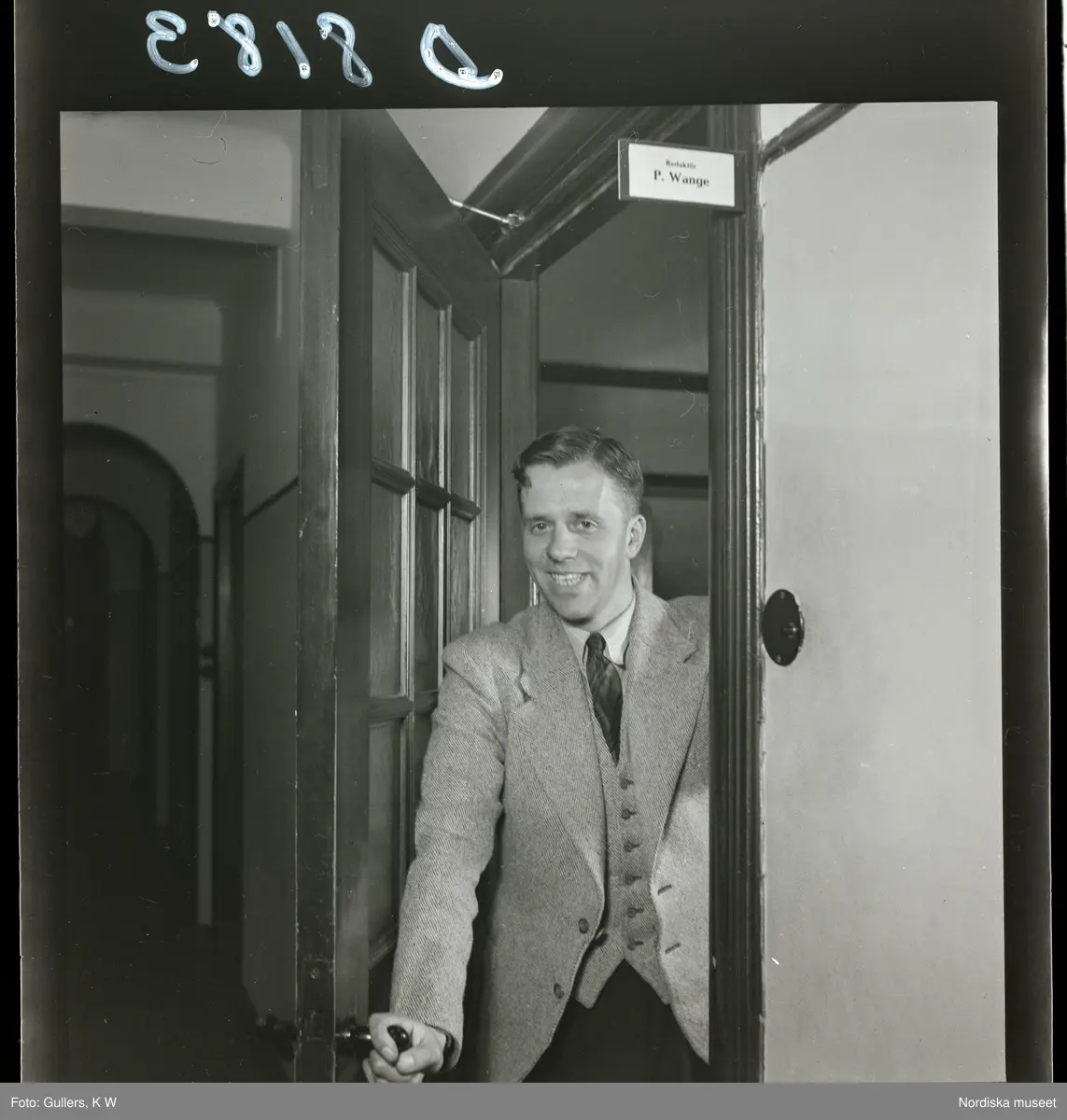 Journalist P. Wange i dörren till sitt kontor på Norrköpings tidningar.