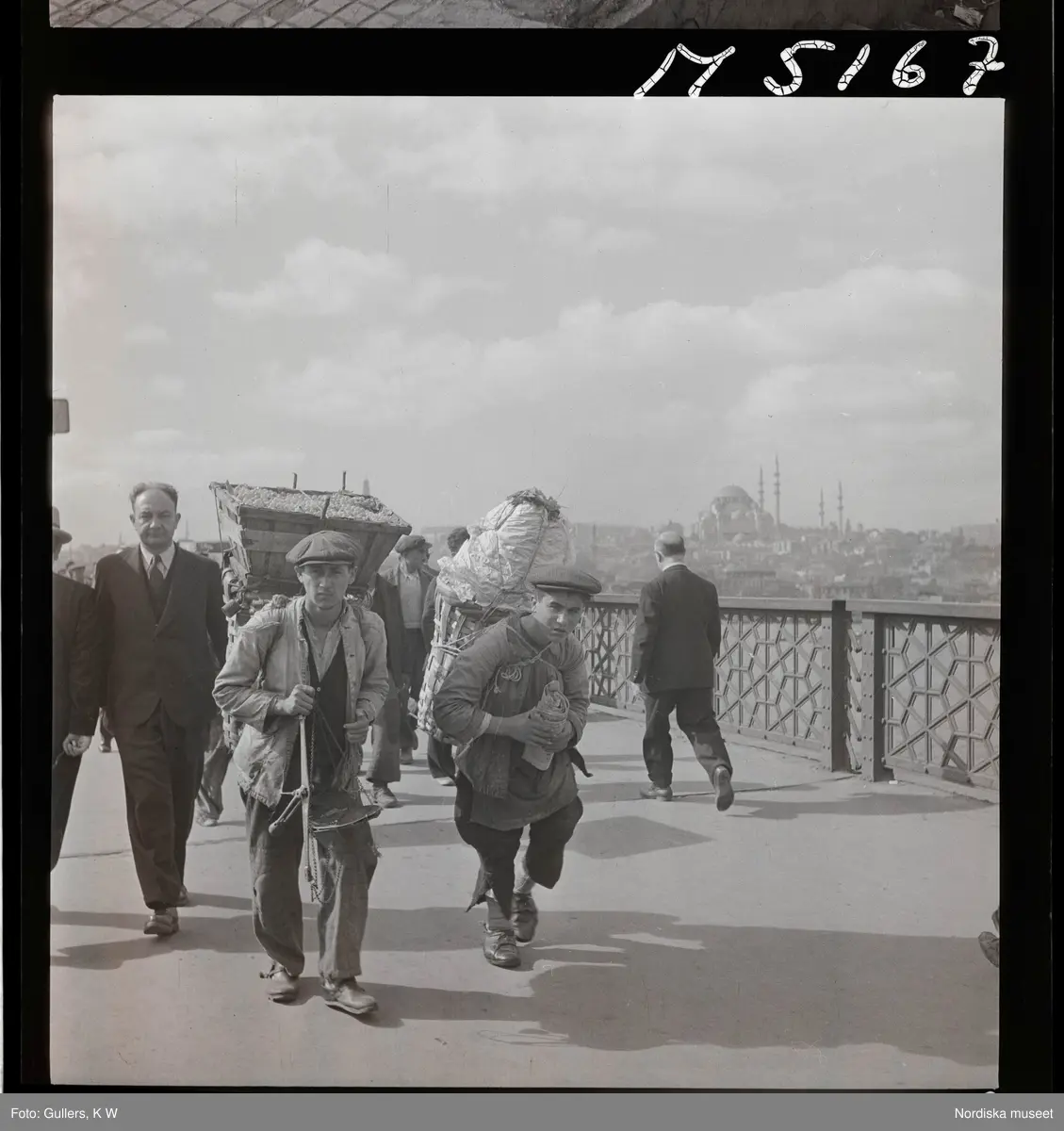 1717/L Istanbul allmänt. Gatuliv. Transport av varor, två unga män bär korgar på ryggen.